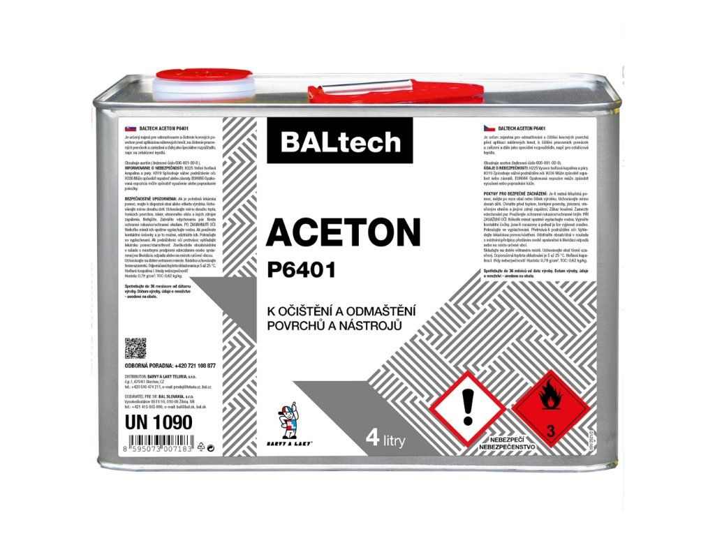 Aceton je určen k odmašťování a čištění kovových povrchů před aplikací nátěrových hmot, k čištění pracovních pomůcek a zařízení a dále jako speciální rozpouštědlo, např. pro nitrocelulózová lepidla.