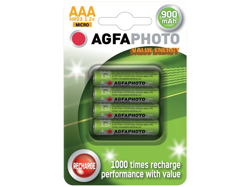 Ak hľadáte energeticky úsporné a ekologické riešenie, zvoľte nabíjacie AAA batérie AgfaPhoto, ktoré je možné dobiť až 1000-krát.