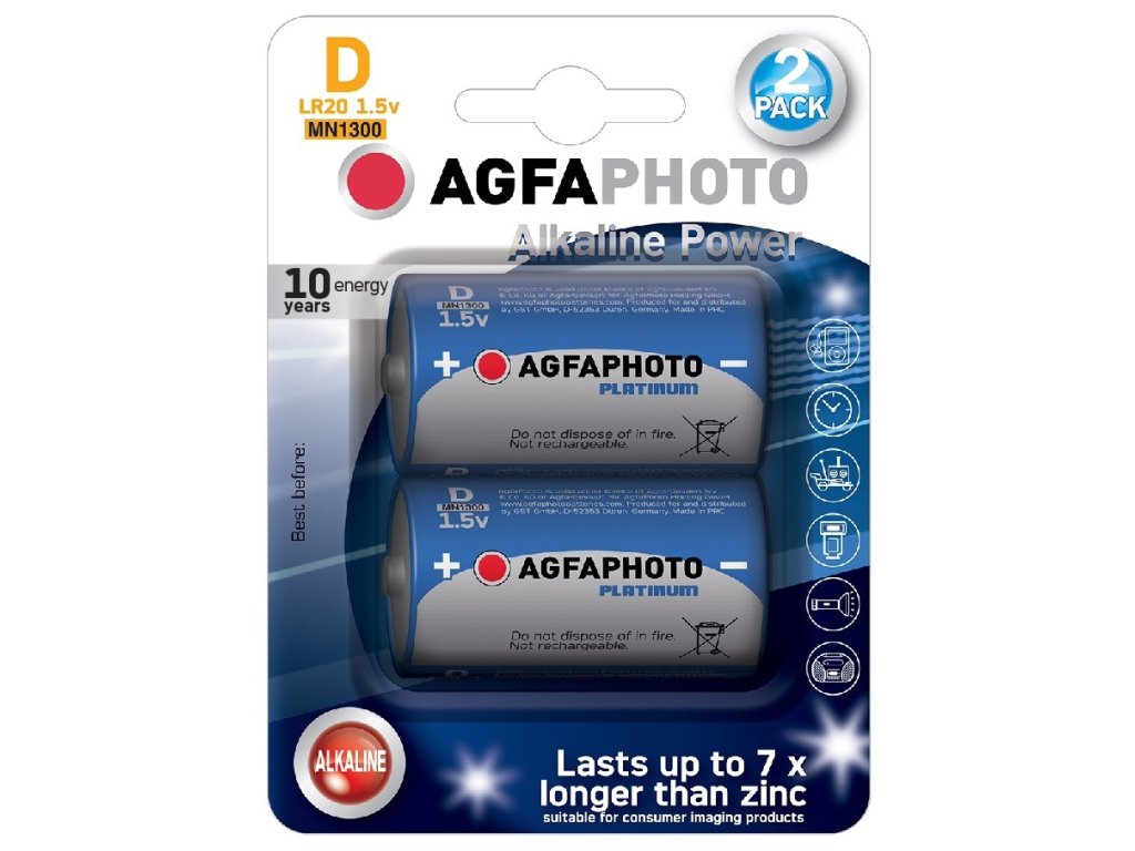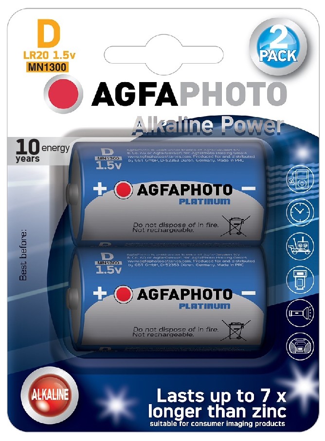 AgfaPhoto Power alkalická batéria LR20/D, blister 2ks