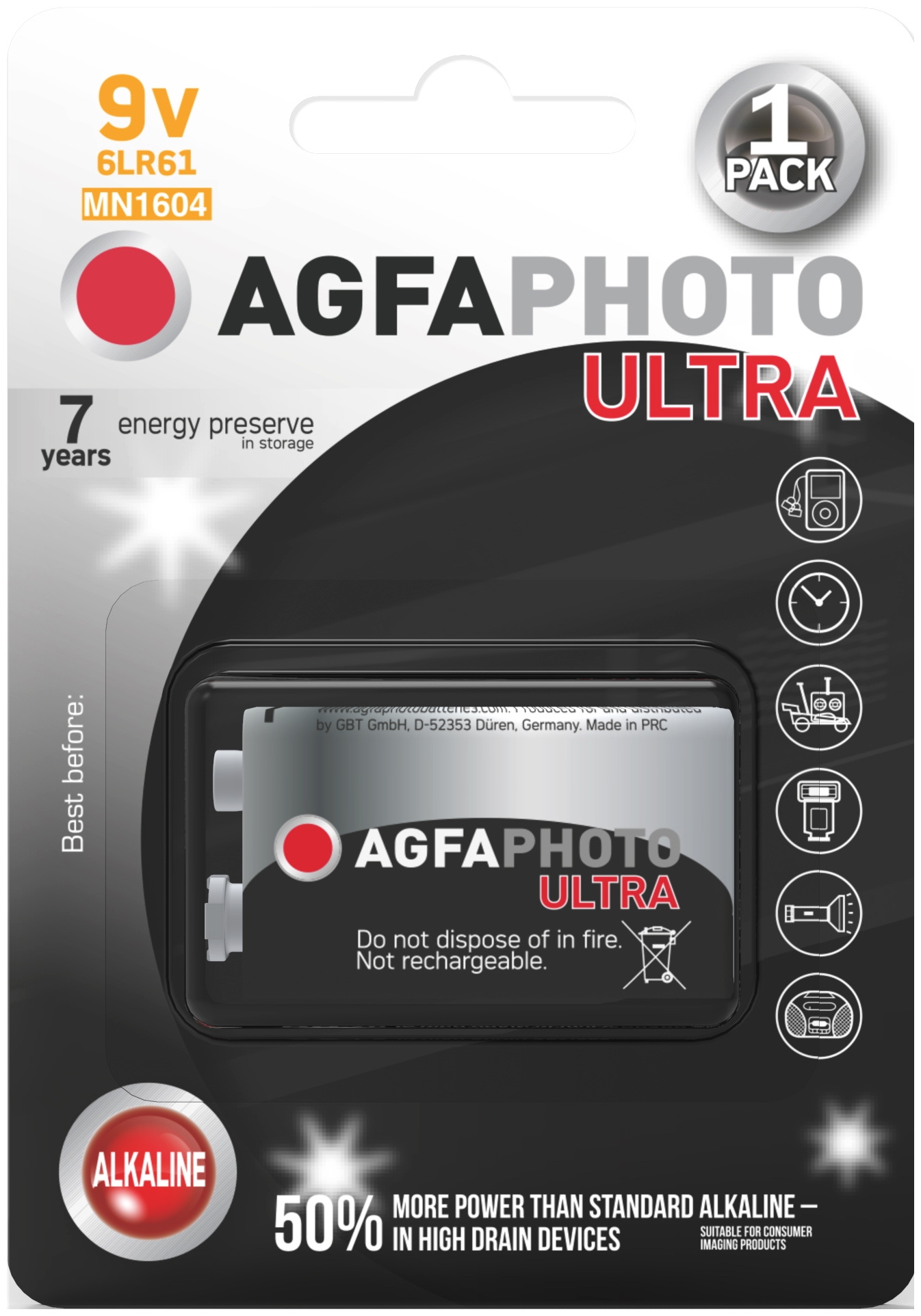 - Najvýkonnejší prémiový rad batérií AgfaPhoto ULTRA určený pre zariadenia s najvyššími nárokmi na energiu