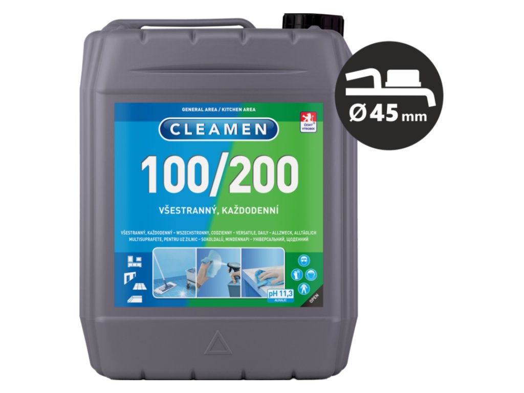 Penivý a veľmi parfémovaný čistiaci prostriedok na všestranné denné čistenie všetkých plôch v podobe silného koncentrátu (CLEAMEN 100/200), alebo už predpripraveného aplikačného roztoku na priame použitie (CLEAMEN 100/200 A). Je určený ako na umývanie sprejovou metódou, tak aj na dávkovanie do vedra pri umývaní plôch mokrou cestou.