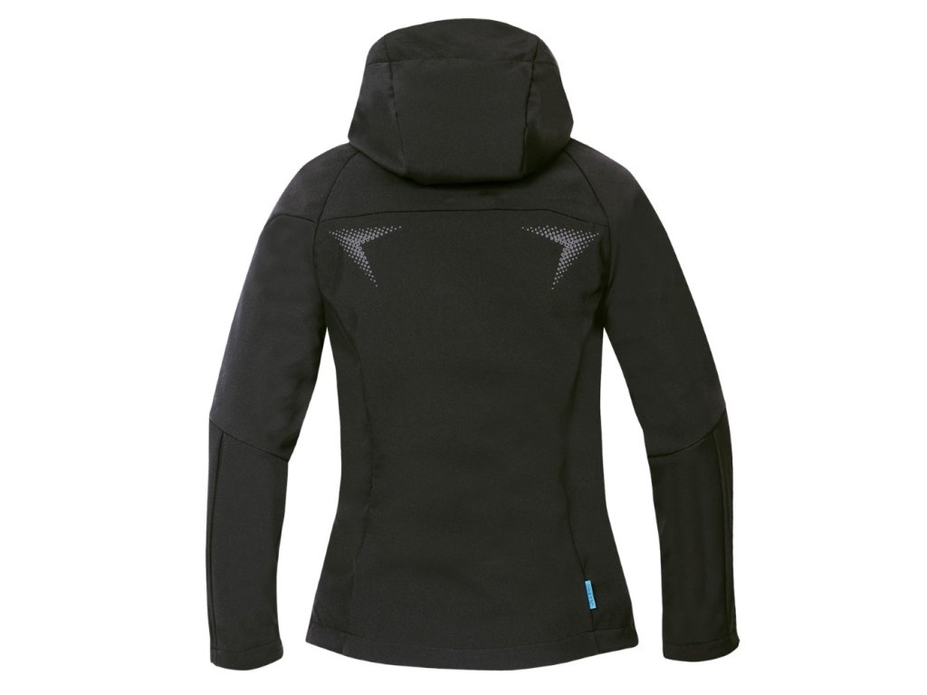 Dámska softshellová bunda s kapucňou z materiálu ElasticTech®Flexi s membránou je nepremokavá, vetruodolná a priedušná. Obvod odopínateľnej kapucne a spodný okraj bundy sa dá upraviť pomocou stoperov. Vnútornú časť tvorí príjemný fleece. Bunda s raglánovými rukávmi má anatomicky tvarovaný funkčný strih SLIM FIT, priebežný zips s ochranou brady, 1 náprsné vrecko na zips a 1 vrecko na zips na ľavom rukáve, 2 bočné vrecká na zips. Pre bezpečnosť pohybu je vybavená reflexnými prvkami. Vďaka modernému dizajnu má bunda všestranné využitie v prírode, pri športových a voľnočasových aktivitách.