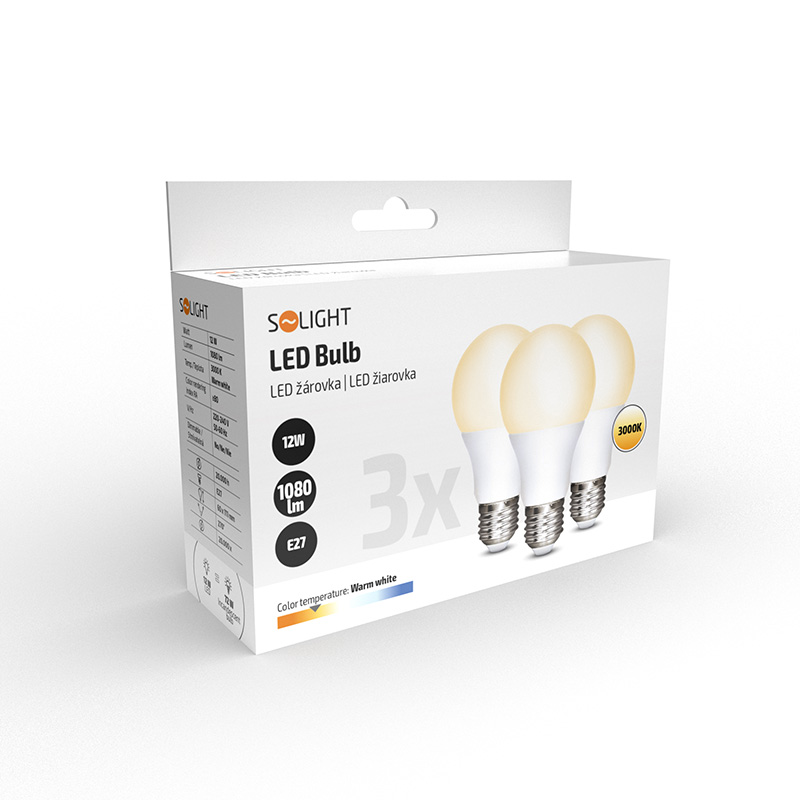 ECOLUX LED žiarovka 3-pack, klasický tvar, 12W, E27, 3000K, 270°, 1080lm, 3ks v baleniu