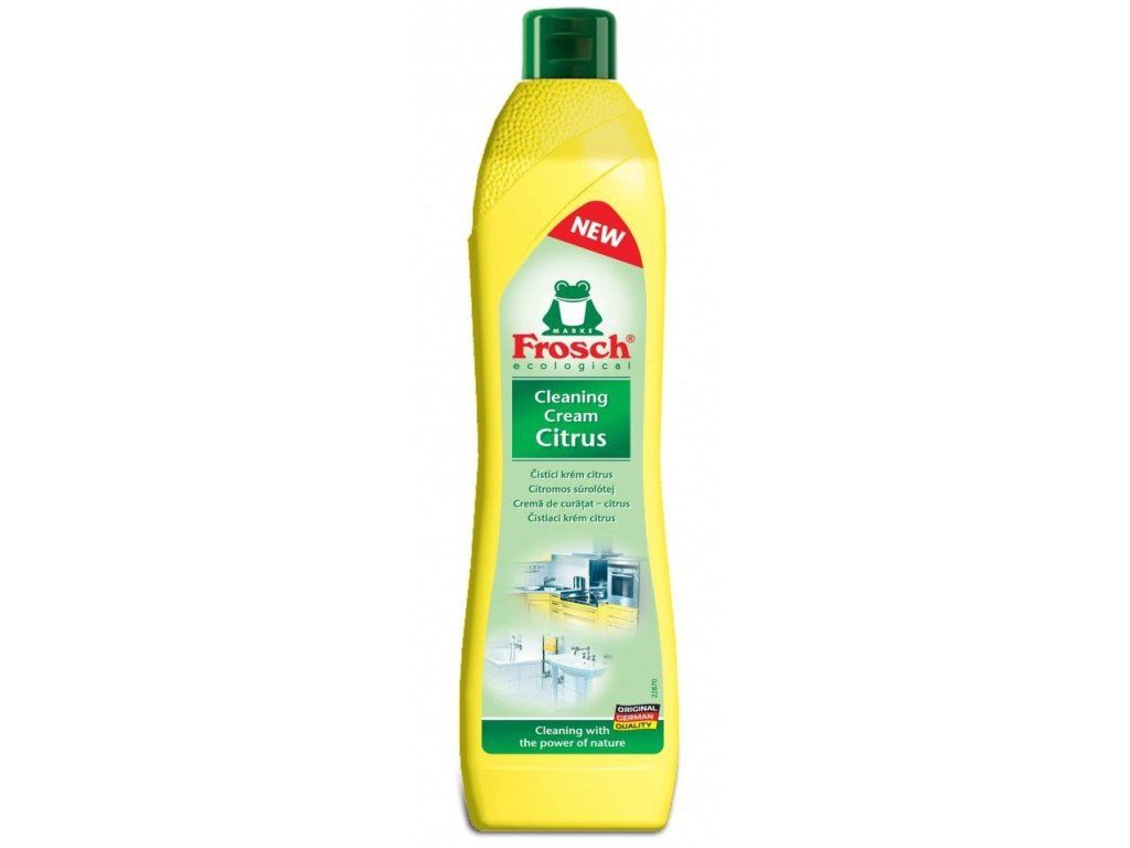Výborně odstraňuje všechny druhy nečistot, jako mastnotu, zbytky mýdla a vodní kámen ze všech keramických, smaltovaných, nerezových a skleněných povrchů. Čisticí a odmašťující účinek výrobku Frosch Čisticí krém Citrón zaručuje jemně mletý přírodní vápenec a výtažek z kůry citrónů. Zanechává dlouhodobou svěží citrónovou vůni. Nepoužívejte na umělohmotné povrchy, např. akryláty nebo plexisklo.