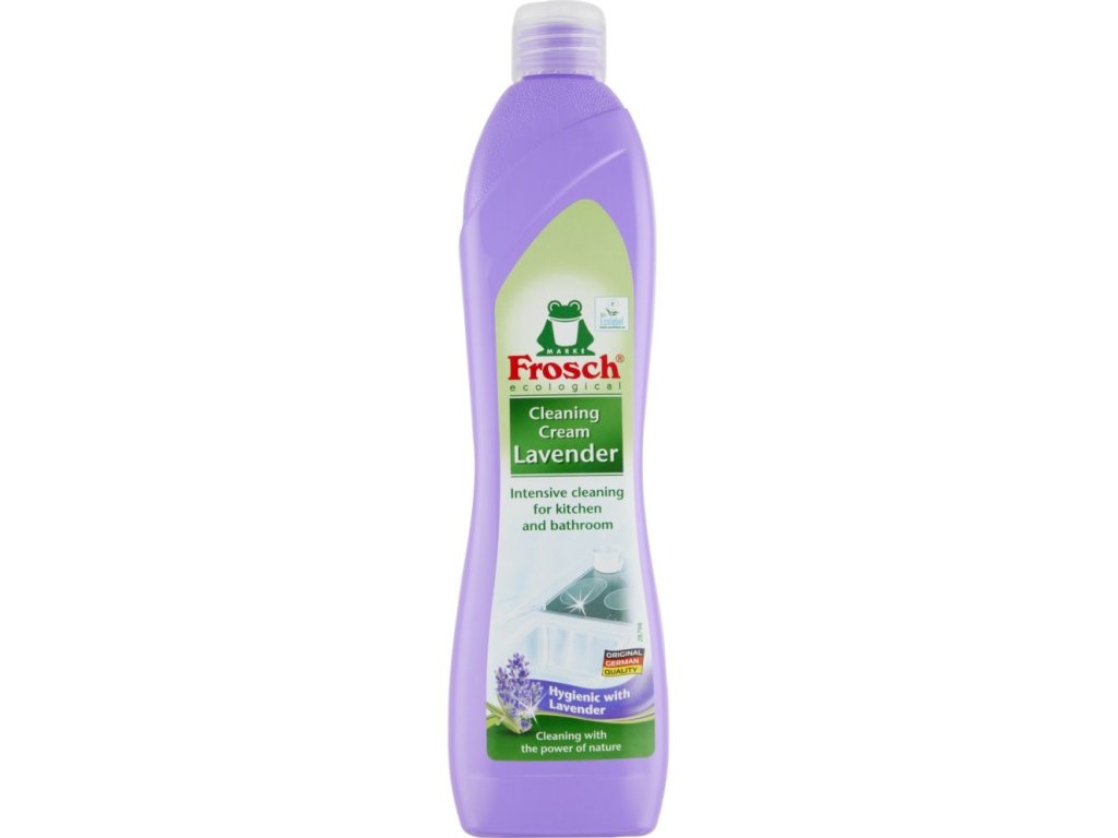 Výborně odstraňuje všechny druhy nečistot, jako mastnotu, zbytky mýdla a vodní kámen ze všech keramických, smaltovaných, nerezových a skleněných povrchů. Frosch Čistící krém Levandule funguje na bázi mramorové moučky a zanechává příjemnou levandulovou vůni. Nepoužívejte na umělohmotné povrchy, např. akryláty nebo plexisklo.