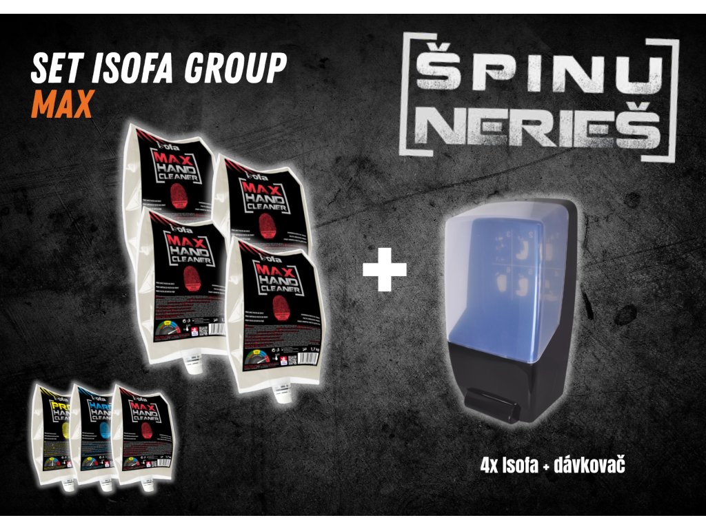 ISOFA MAX: Najúčinnejšia profesionálna tekutá pasta na ruky z našej ponuky Je určená na použitie v náročných podmienkach. Pôsobí na extrémne odolné nečistoty z tlačiarenského priemyslu, lakovní, servisov ťažkej techniky atď.