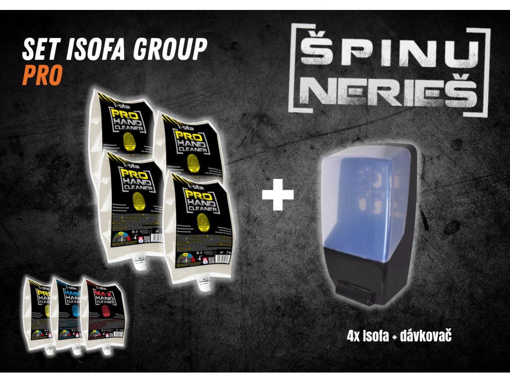 ISOFA PRO: Profesionálna tekutá umývacia pasta na umývanie znečistenej pokožky. Rýchlo a veľmi šetrne odstrániť nečistoty z vašich rúk. Určený na odstránenie odolných nečistôt ako sú mazivá, brzdové usadeniny, cement, hrdza, tmely a ďalšie. Používa sa najmä v automobilovom a stavebnom priemysle.