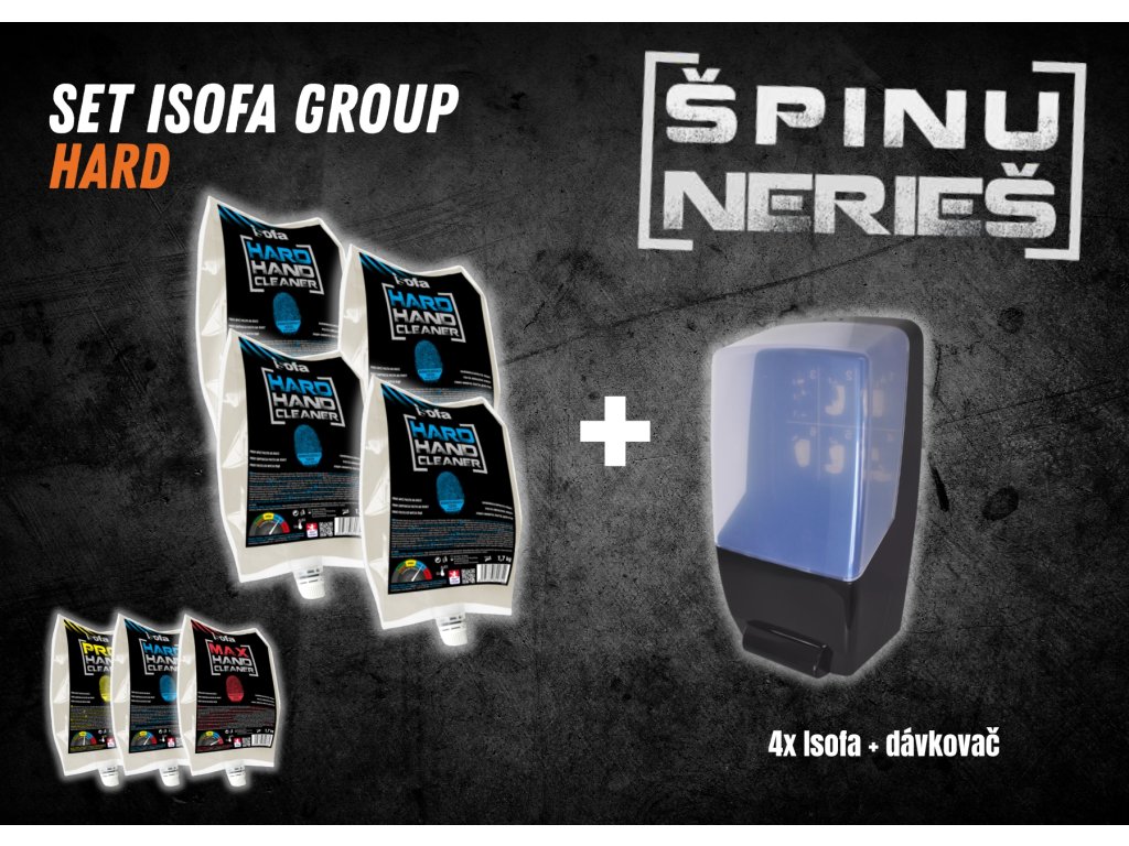 ISOFA HARD: Profesionálna tekutá umývacia pasta na ruky na odstránenie silne odolných nečistôt z pokožky. Dokonale zmyje špinu, ktorú so sebou nesie práca v autoservisoch, technických službách, či ťažkom priemysle. Poradí si však aj s ďalšími nečistotami z iných odborov. Umývacími schopnosťami prevyšuje väčšinu pást na trhu.