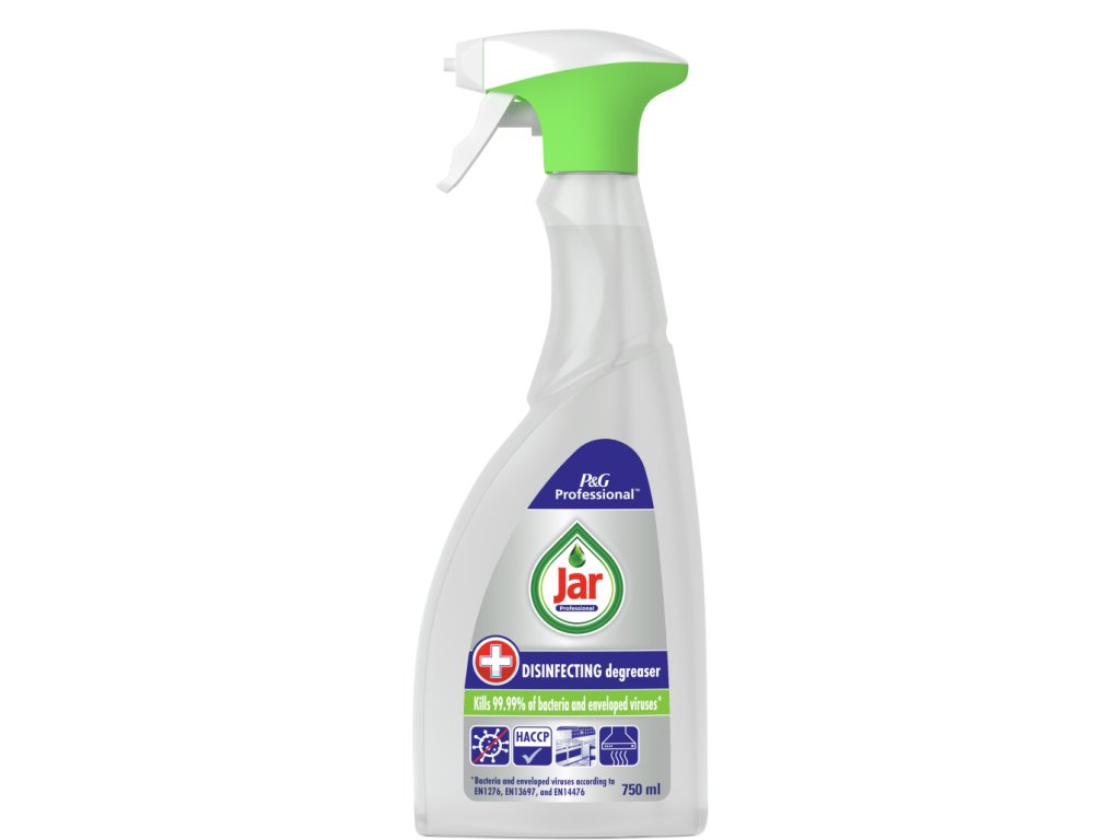 Vysoce účinný JAR na odmašťování a dezinfekci všech kuchyňských povrchů včetně pracovních ploch, dřezů, varných ploch sporáků a keramických obkladaček. Vhodný i na čištění povrchů, které přicházejí do kontaktu s potravinami. Povrchy čistí a zároveň dezinfikuje. Likviduje 99,99% bakterií, včetně salmonely a listerie.
