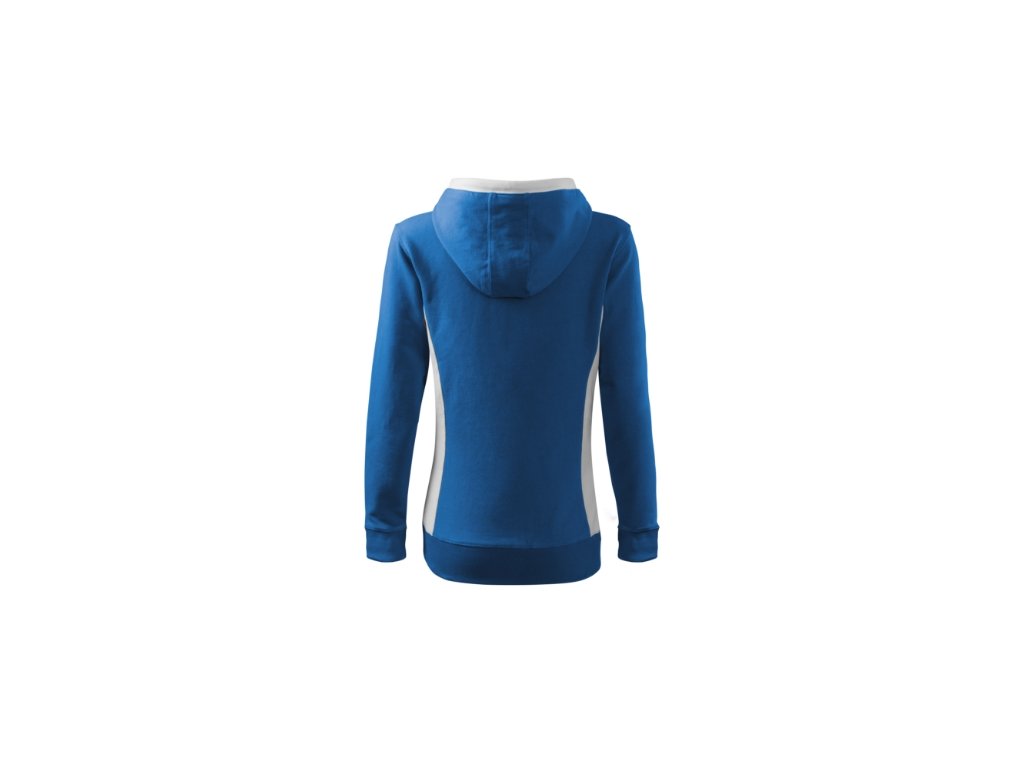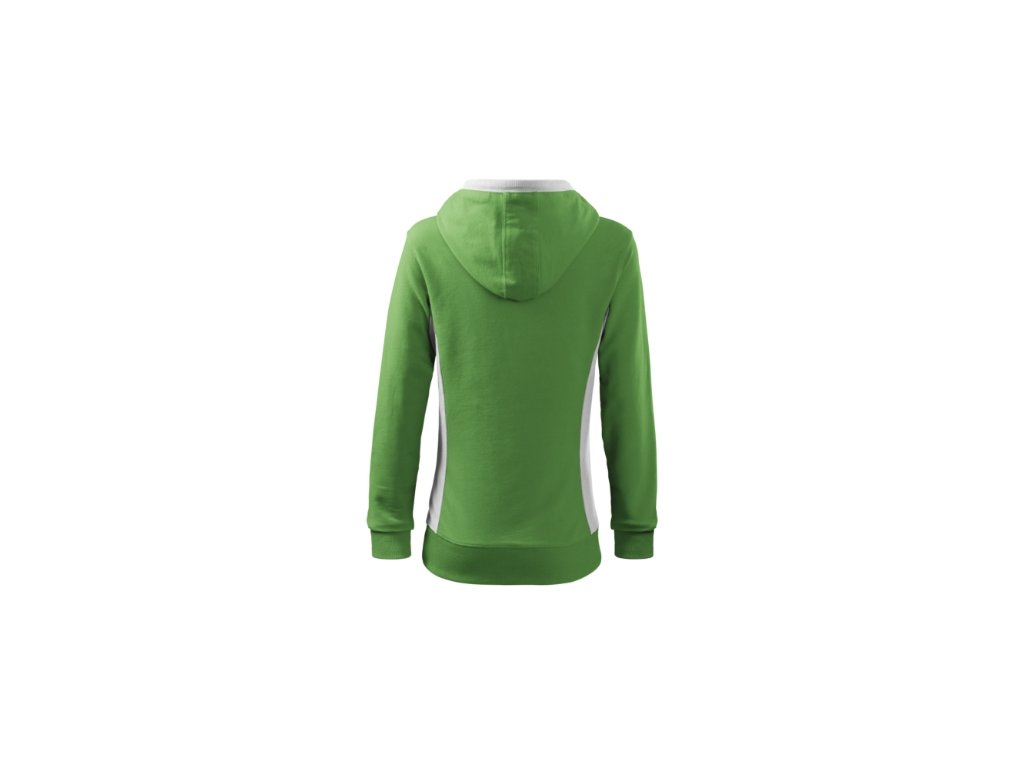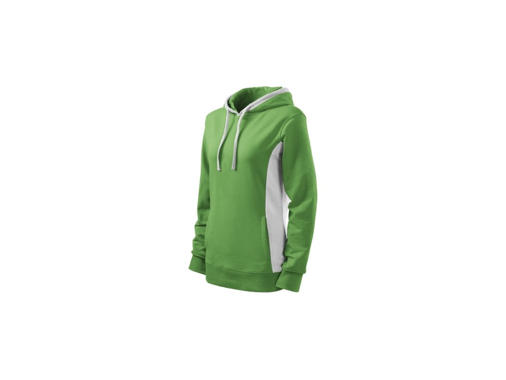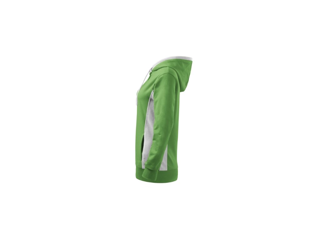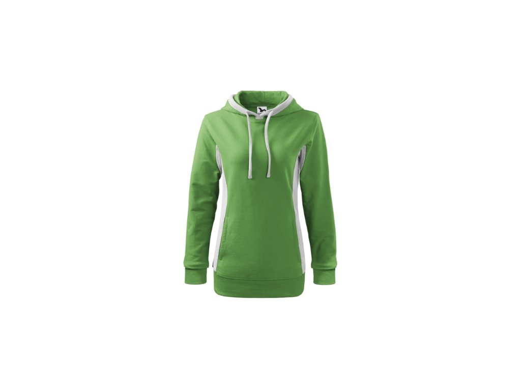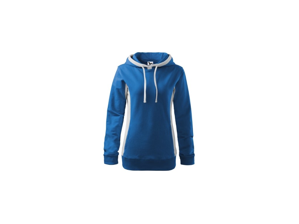 Mikina dámska Kangaroo. Popis a parametre: Výplnková pletenina, vnútorná strana nepočesaná 97 % bavlna, 3 % elastan, strečový rýchloschnúci materiál, strih tvarovaný bočnými dielmi, kapucňa s podšívkou, na stiahnutie šnúrkou, lištové vrecká v štýle klokanky, dolný lem, manžety a priekrčník z rebrového úpletu 1:1 s 5 % elastanu, kontrastné prvky (okrem farieb BB a WW), vnútorná strana nepočesaná