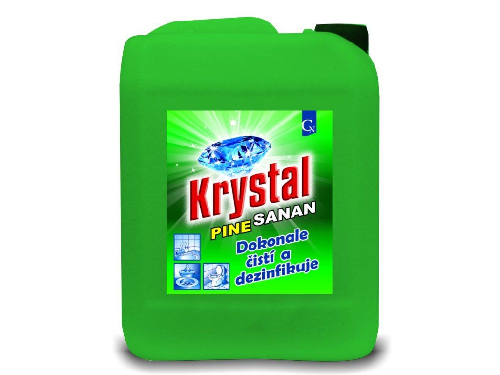 Krystal PINE SANAN je vysoce účinný čistící alkalický a extra hustý čistící a dezinfekční gel. Odstraňuje tuky, bílkoviny, usazenou špínu a skvrny. Dobře působí i na těžko dostupných místech. Snadno přilne k povrchu i na svislých plochách, takže zvyšuje mycí i dezinfekční účinek. Ničí bakterie, likviduje nepříjemný zápach, dezinfikuje, čistí a bělí. Je vhodný pro použití v domácnostech, zdravotnictví, potravinářství a v zemědělství. Je vhodný zejména na záchodové mísy a pisoáry, umyvadla, vany, dřezy, podlahy, kachličky, pracovní plochy a odpady. Synergický účinek směsi tenzidů a přísady s bělícími vlastnostmi předurčuje tento výrobek k širokému použití v různých oblastech. Pěnivost prostředku zvyšuje smáčecí schopnosti.