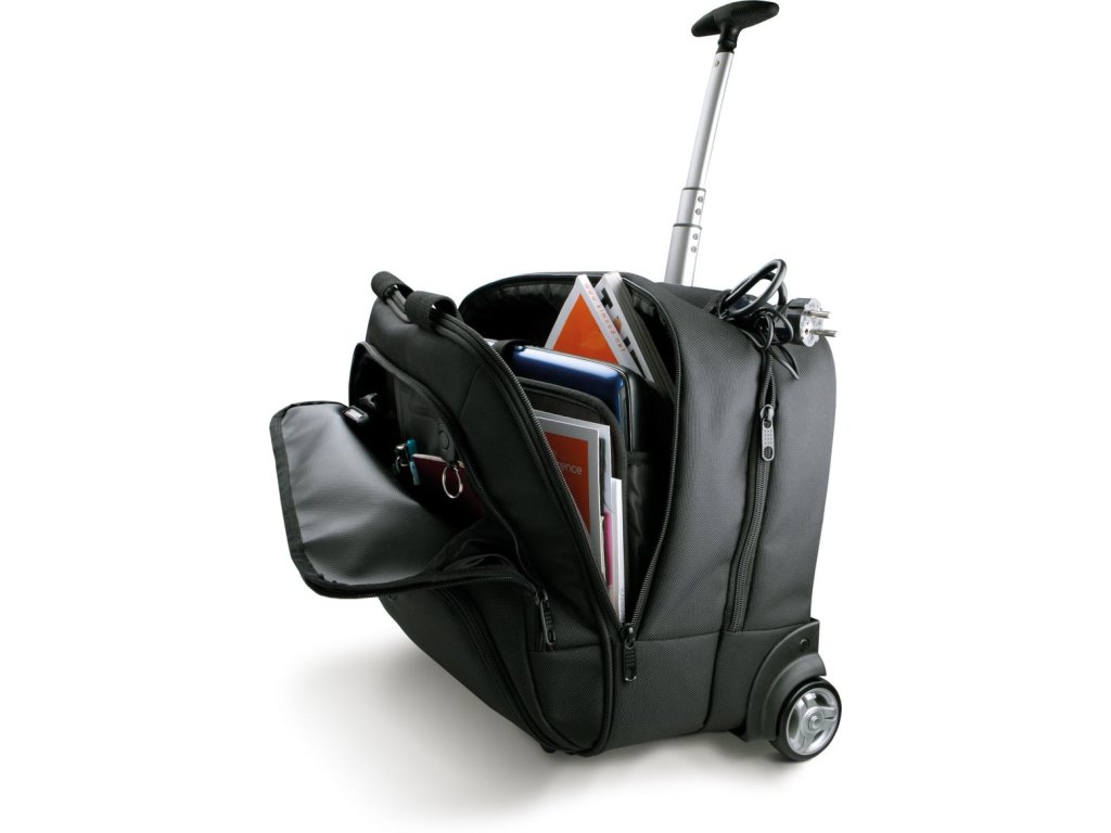 Teleskopická rukoväť, 2 predné vrecká, polstrovaná hlavná priehradka pre 15" notebook,