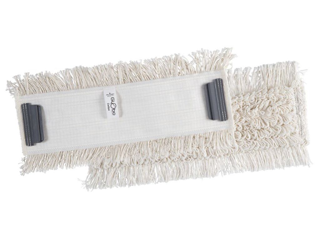 Bavlněný mop GLOBO COTTON s polyesterovým podkladem, smyčková příze uvnitř, střižená příze vně, s mikrochlopněmi. Používá se hlavně pro mokré vytírání středně znečištěných podlah (v hotelích, domech, kancelářích, nemocnicích atd.). K použití s držákem mopu Globo.
