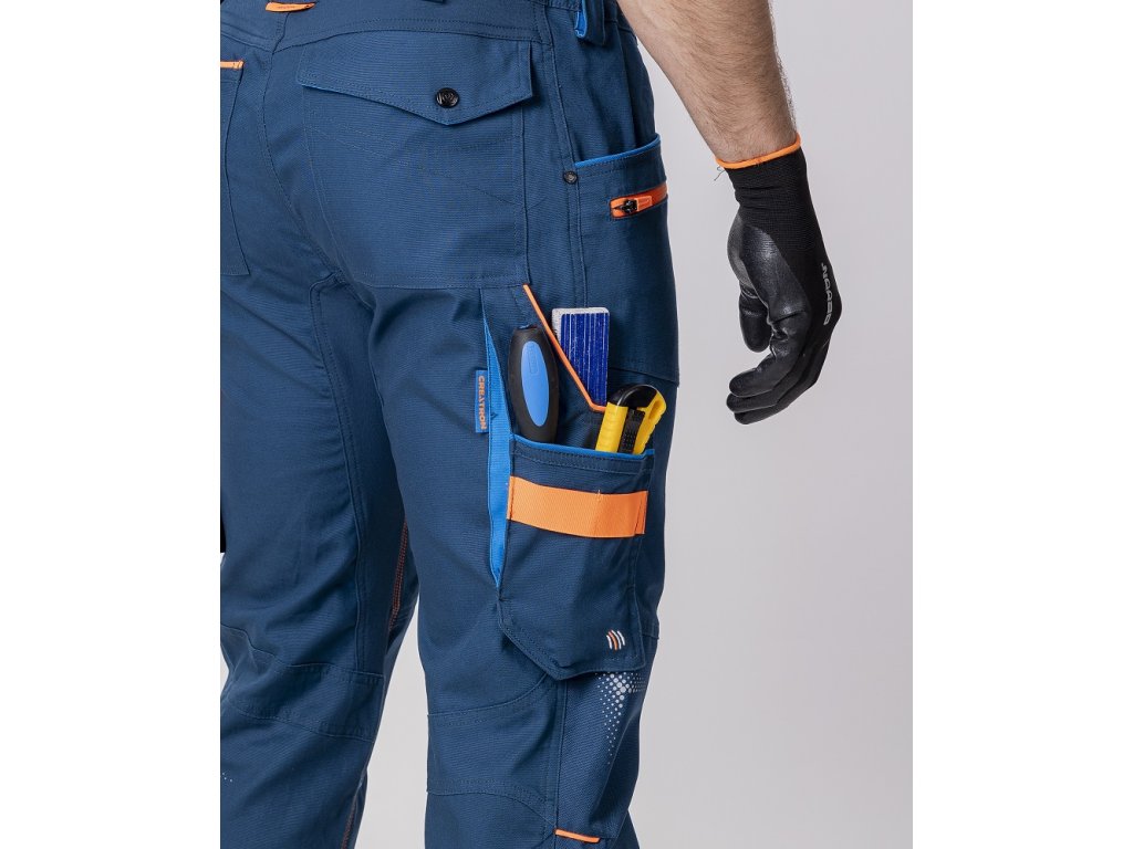 • strečové bavlnené montérkové nohavice do pása zo špeciálneho materiálu Amalytton®, ktorý vyniká zvýšenou pevnosťou a hladkým, jemným povrchom