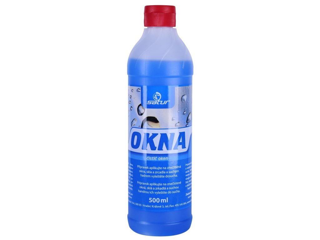 Klasický přípravek na čištění skel, oken a zrcadel modré barvy obsahující několik účinných látek.