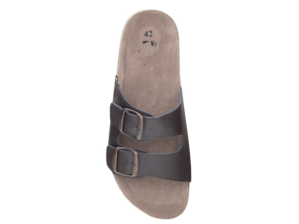 - korkové šľapky so zvrškom z materiálu action leather (štiepaná koža s povrchovou polyuretánovou úpravou)
