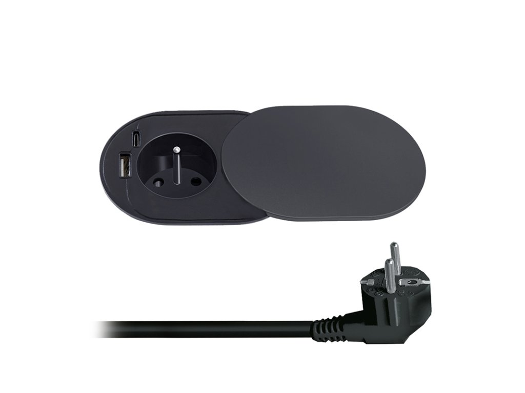 Táto vstavaná zásuvka kombinuje klasickú sieťovú zásuvku 230 V s moderným USB rýchlonabíjaním USB-C a USB-A. Vďaka tomu ľahko nabijete telefón, tablet alebo iné zariadenia bez potreby samostatných adaptérov. Ideálne pre pracovné stoly, kuchyne aj nočné stolíky.