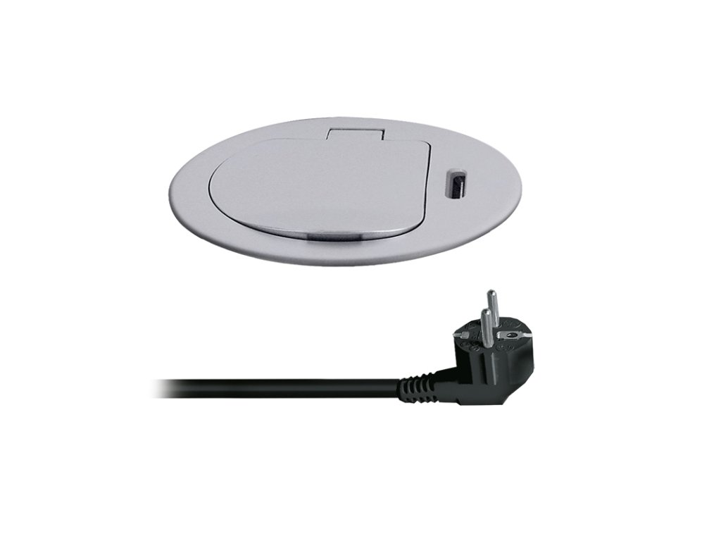 Zásuvka sa inštaluje do otvoru v pracovnej doske a fixuje pomocou skrutkovacieho mechanizmu. Nízky profil a strieborné viečko umožňujú ľahké začlenenie do moderného interiéru bez rušivých prvkov. Po inštalácii zostáva povrch čistý a prehľadný, zásuvka je kedykoľvek okamžite k dispozícii.