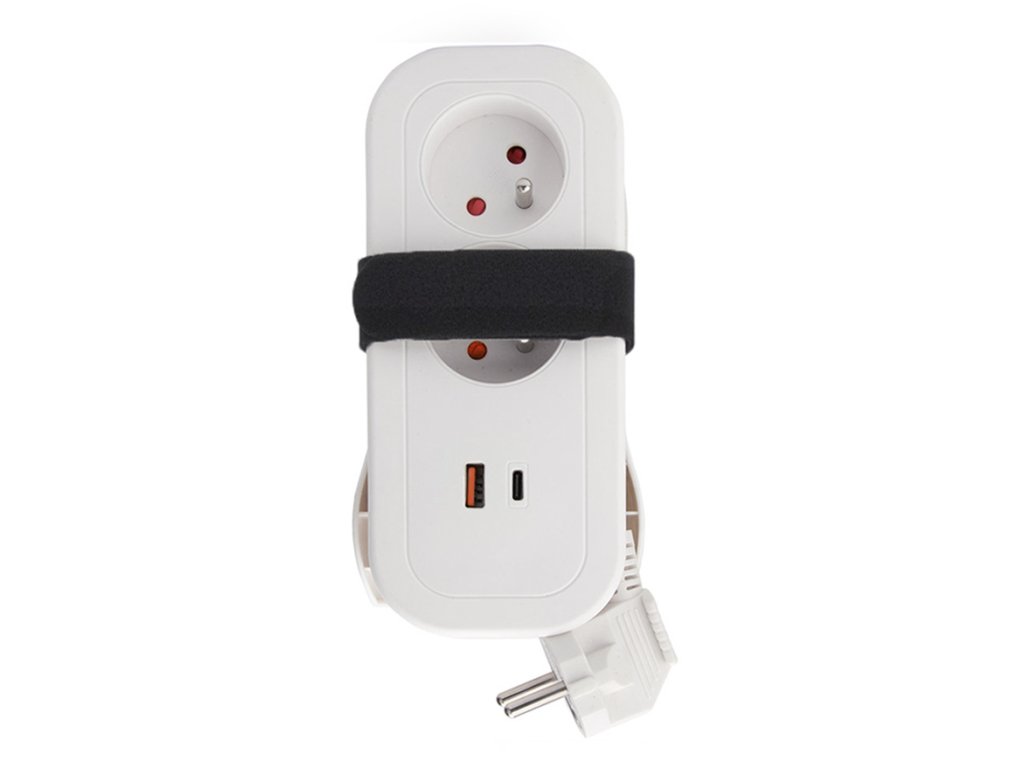 - Predlžovací napájací kábel s dvoma zásuvkami a USB rýchlonabíjačkou. Skladný, výkonný, ľahko prenosný. Ideálny na nabíjanie elektronických zariadení na cestách.