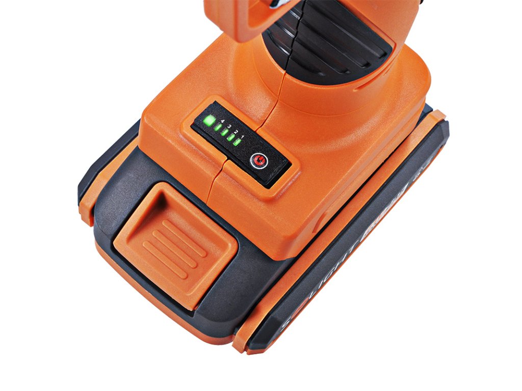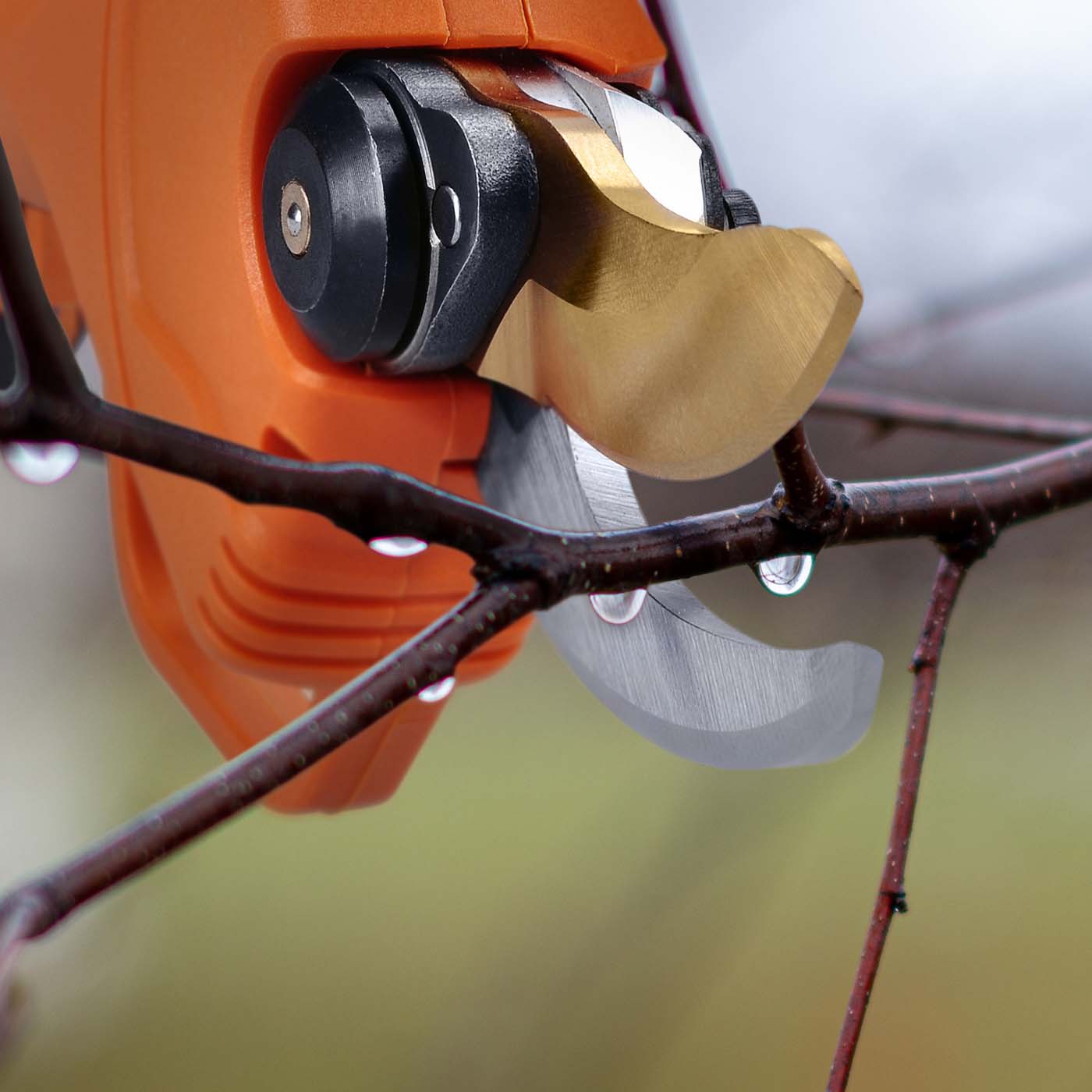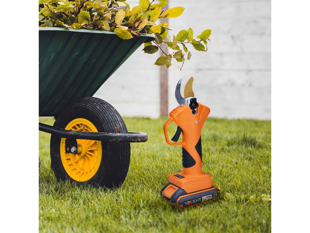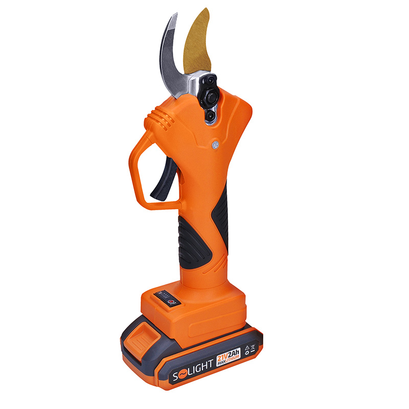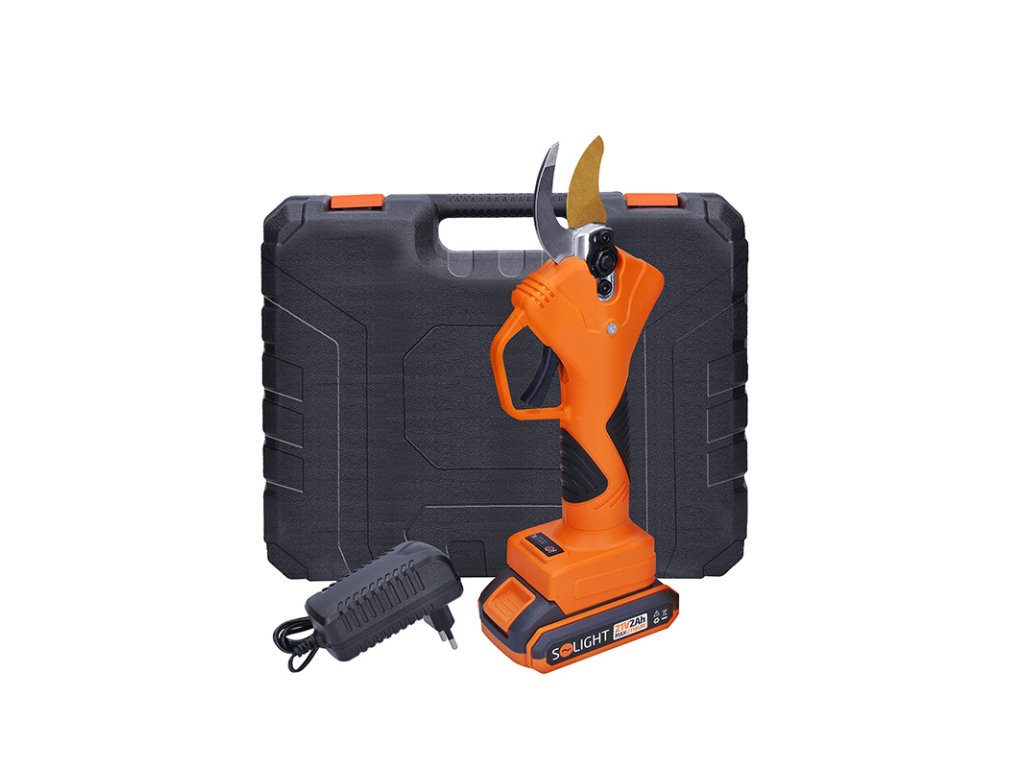Akumulátorové nožnice s bezuhlíkovým motorom pre vysoký výkon a dlhú životnosť. Ideálne na strihanie konárov s hrúbkou do 30 mm. Obsahuje štyri nastaviteľné režimy otvárania čeľustí na flexibilné použitie. Hmotnosť 1,2 kg s batériou, protišmykový povrch a elektronická poistka proti náhodnému spusteniu zabezpečujú pohodlnú a bezpečnú prácu. Súčasťou balenia je: plastový kufor, 1x 2Ah akumulátor, nabíjačka, návod a náradie. Až 500 rezov na jedno nabitie, čas nabíjania cca 150 minút. Napájanie 21 V 2Ah Li-Ion akumulátorom, rozmery 30 x 12 x 8 cm.