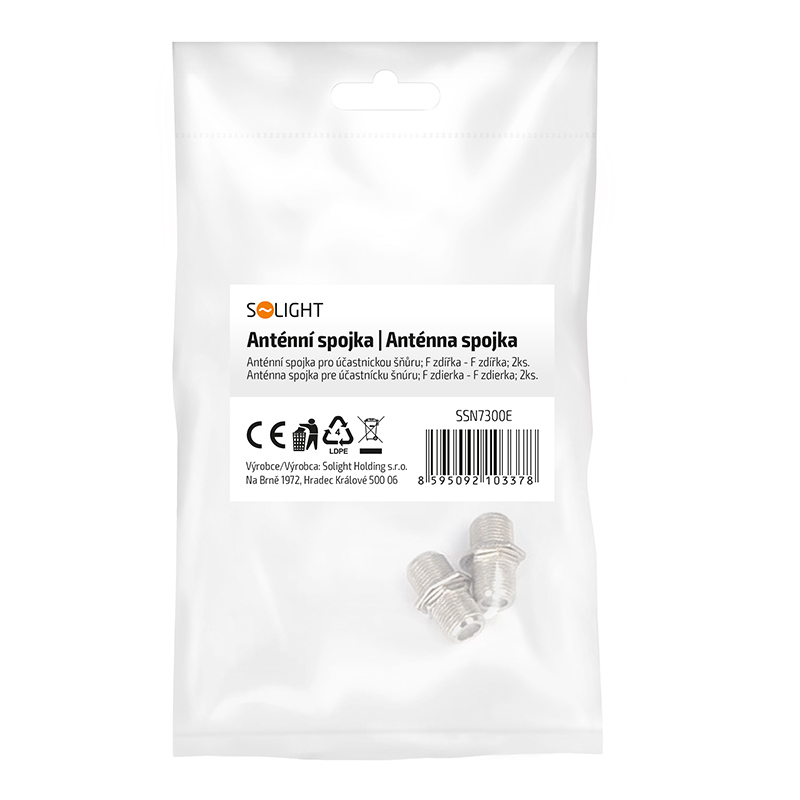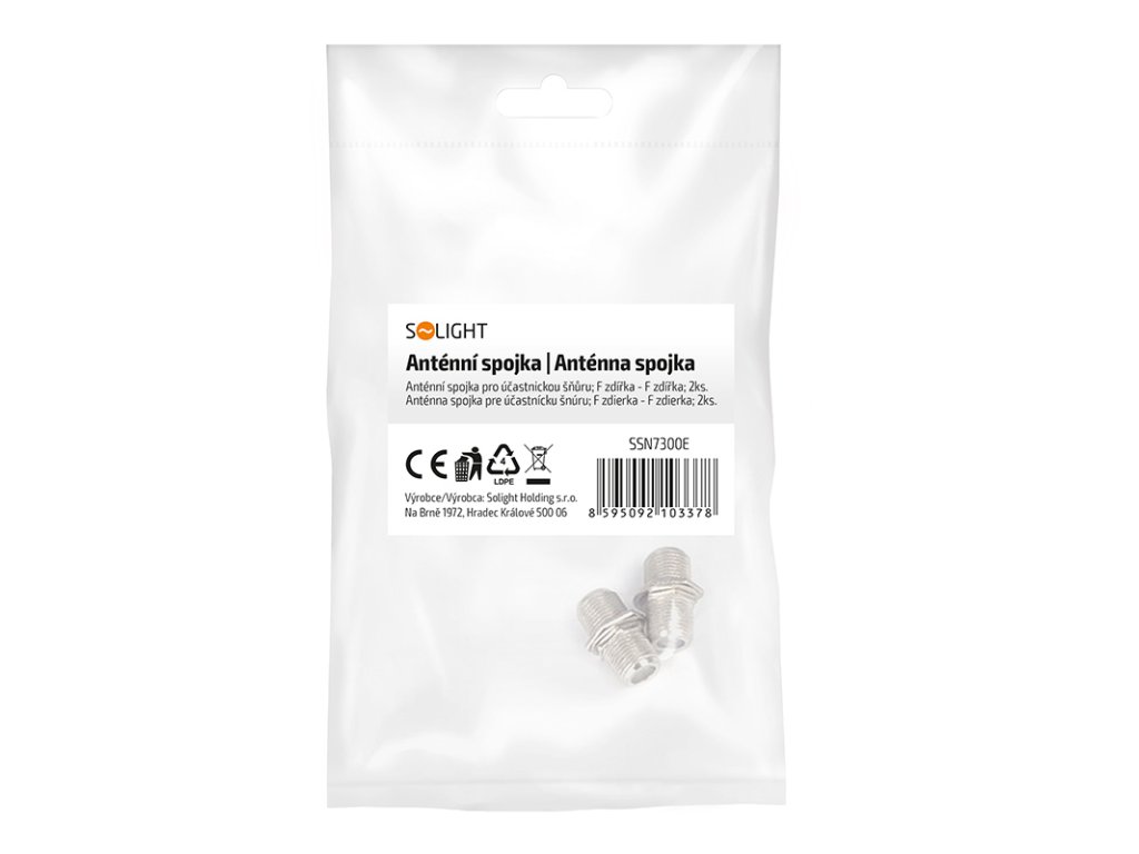 Kvalitná anténna spojka typu F–F slúži na spojenie dvoch účastníckych šnúr s F-konektormi. Ideálne na predĺženie koaxiálnych káblov pri televíznych, satelitných alebo kamerových systémoch.