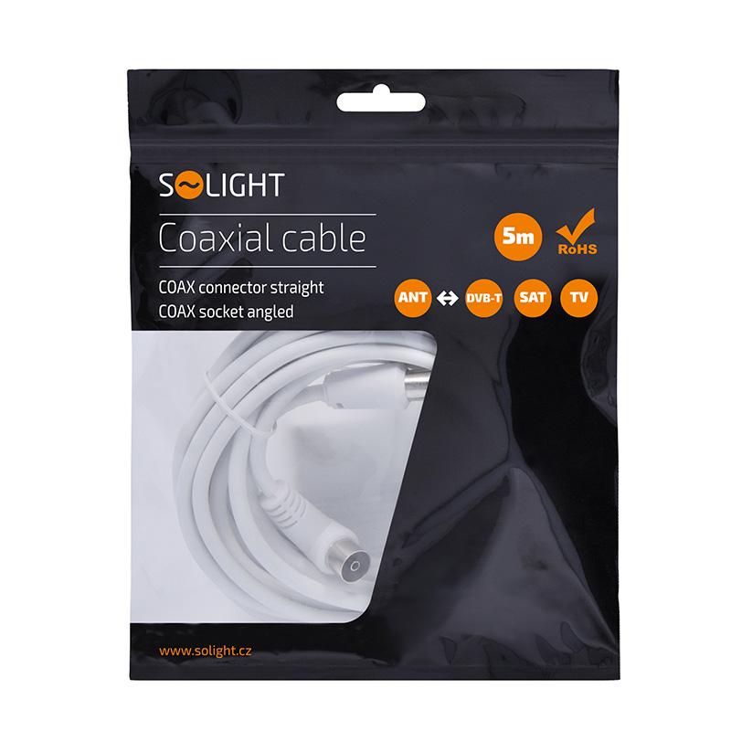 Solight anténny koaxiálny kábel, kombinované konektory, 5m, sáčok