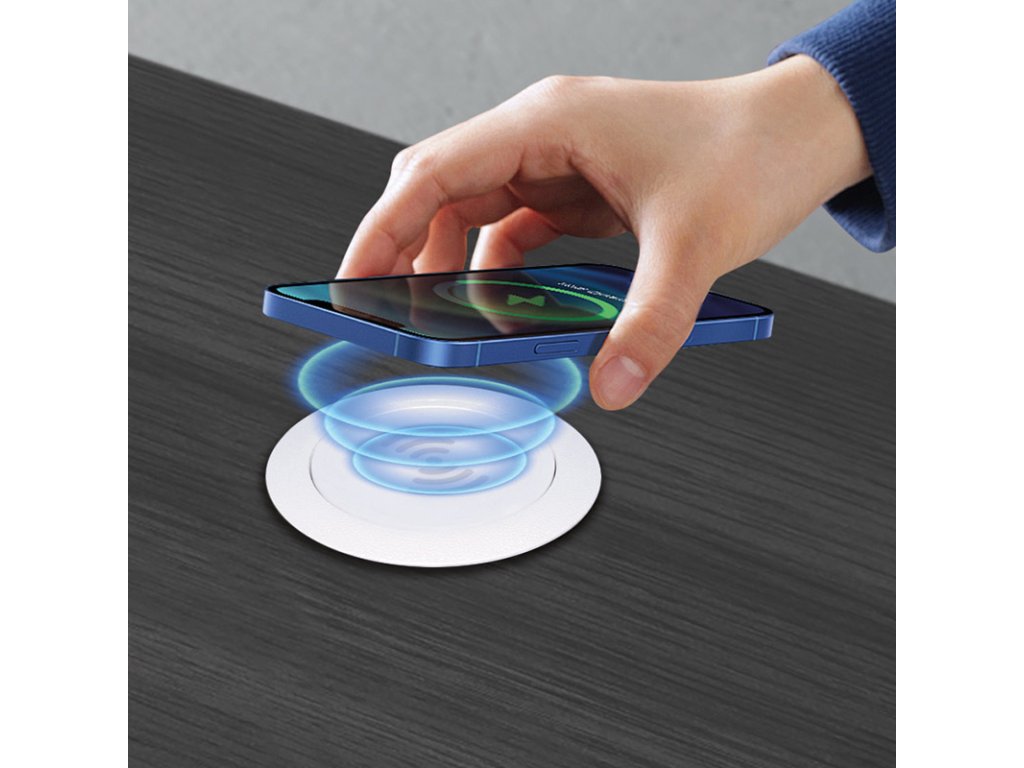 Matne biela nabíjačka s minimalistickým prevedením sa ľahko začlení do každého svetlého interiéru a bieleho nábytku. Vďaka zabudovaniu do dosky stola alebo pracovnej plochy zostáva pracovný priestor čistý, bez rušivých prvkov. Ideálne riešenie pre domácnosti, kancelárie aj verejné priestory.