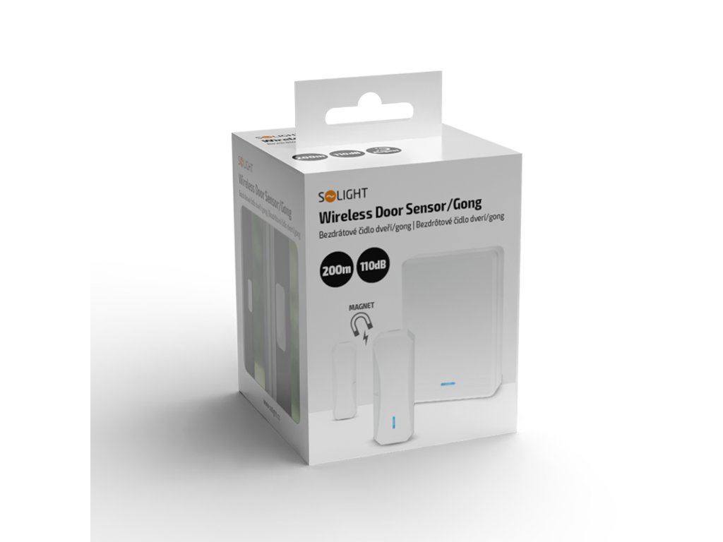 Solight bezdrôtový hlásič pohybu/gong, magnet čidlo na dvere, napájanie zo zásuvky, externé PIR čidlo
