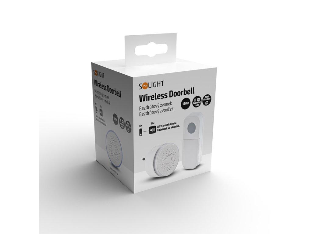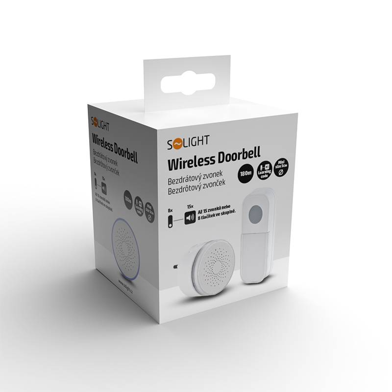 Solight bezdrôtový mini zvonček, do zásuvky, 180m, biely, learning code