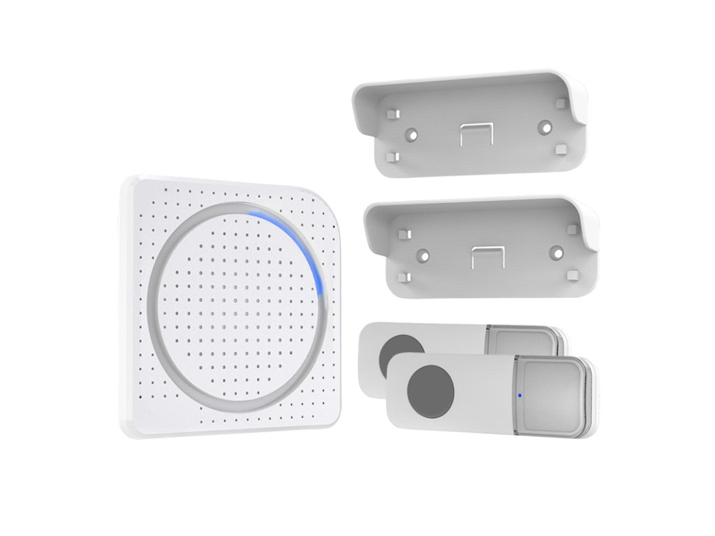 Bezdrôtový zvonček stačí zapojiť do bežnej zásuvky, nie je potrebné žiadne vŕtanie ani ťahanie káblov. Dosah až 200 metrov v otvorenom priestore zaručuje bezproblémové fungovanie aj vo väčších domoch, kanceláriách alebo prevádzkach. Oba vysielače sú spárované k zvončeku a zvyšujú variabilitu použitia, napr. ku vchodovým dverám a na bránku. Sú na batérie a ľahko sa upevnia na stenu alebo dvere. Strieška vysielača zvyšuje odolnosť proti dažďu a zároveň chráni pred priamym slnečným svetlom, to predlžuje jeho životnosť.
