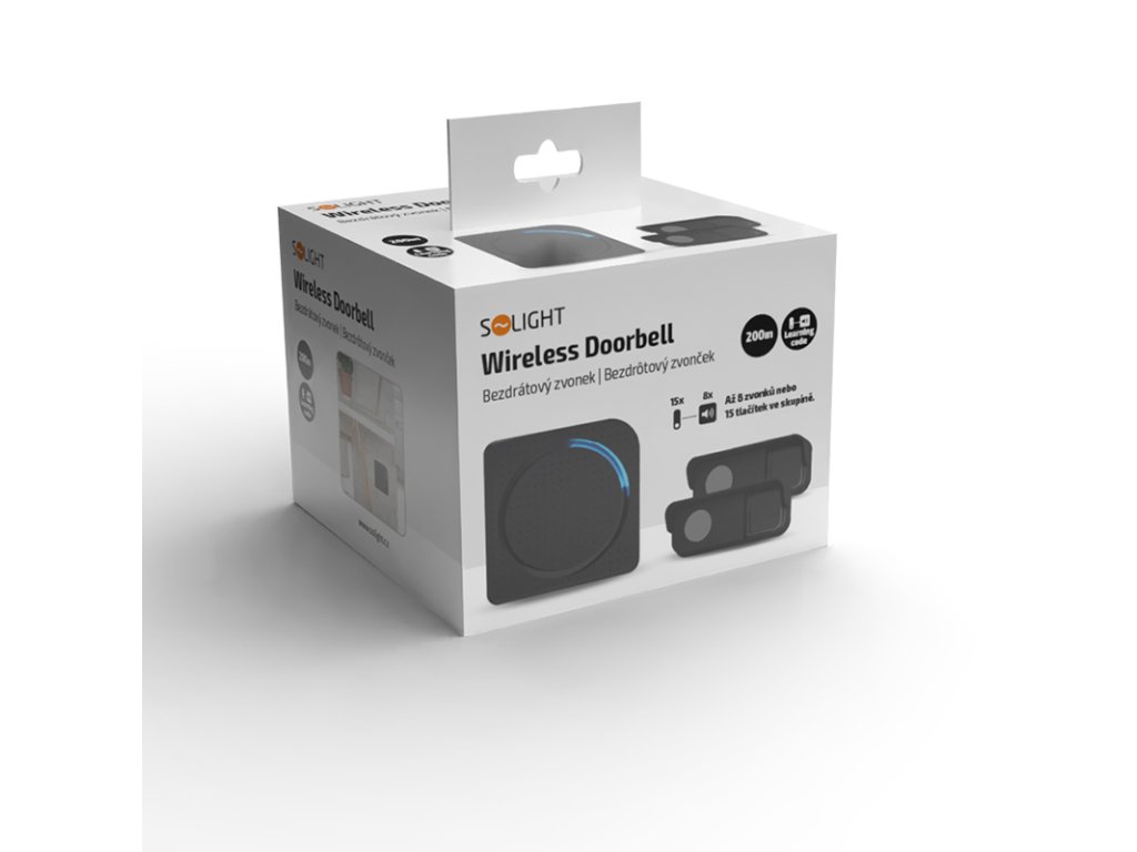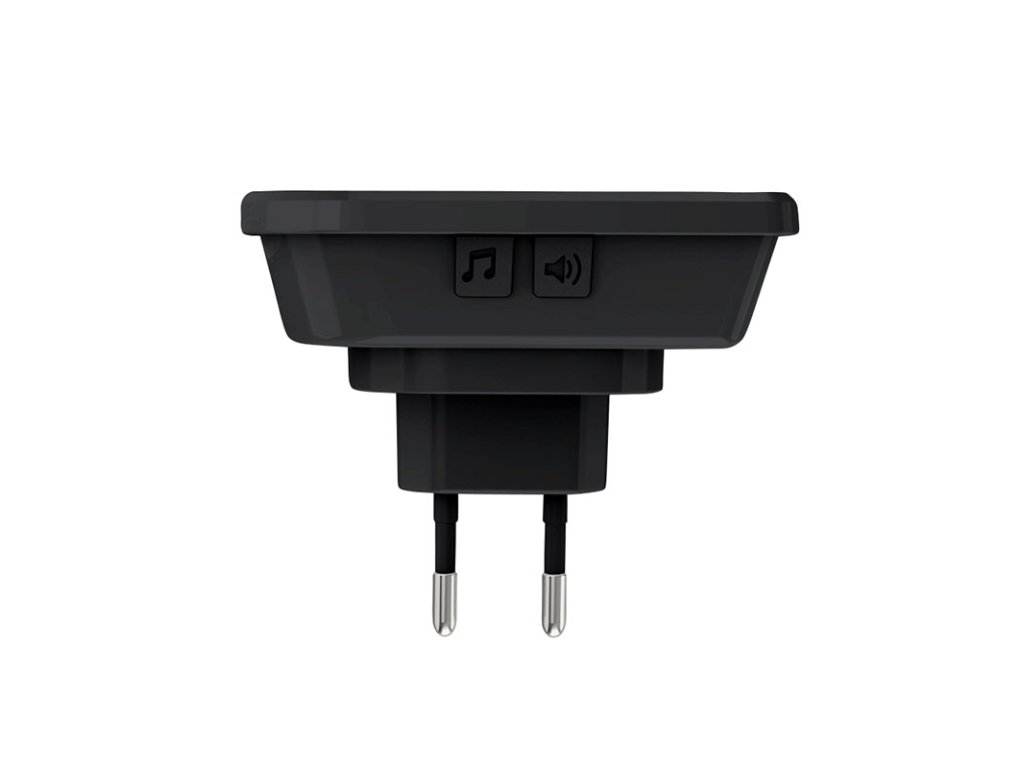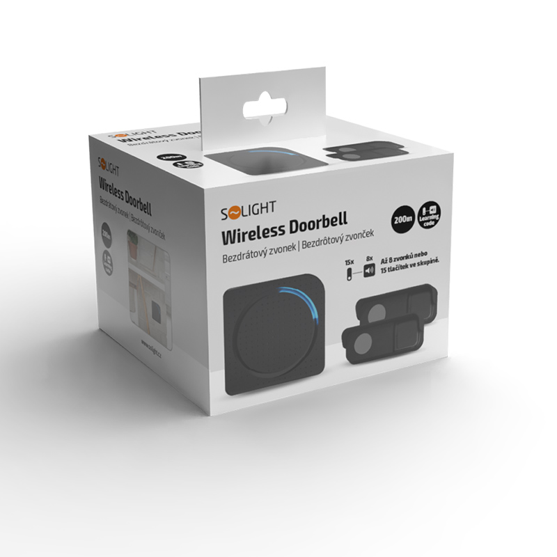 Solight bezdrôtový zvonček, 2 tlačidlá, do zásuvky, 200m, čierny, learning code