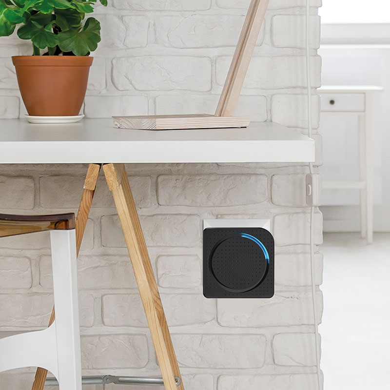 Bezdrôtový zvonček stačí zapojiť do bežnej zásuvky, nie je potrebné žiadne vŕtanie ani ťahanie káblov. Dosah až 200 metrov v otvorenom priestore zaručuje bezproblémové fungovanie aj vo väčších domoch, kanceláriách alebo prevádzkach. Oba vysielače sú spárované k zvončeku a zvyšujú variabilitu použitia, napr. ku vchodovým dverám a na bránku. Sú na batérie a ľahko sa upevnia na stenu alebo dvere. Strieška vysielača zvyšuje odolnosť proti dažďu a zároveň chráni pred priamym slnečným svetlom, to predlžuje jeho životnosť.