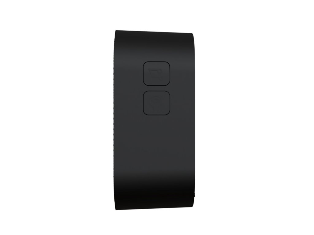 Matné čierne prevedenie s jemnou štruktúrou na čelnej strane imituje vzhľad textílie, čo dodáva zvončeku tradičný a domácky charakter. Dizajn je jednoduchý, funkčný a vhodný pre užívateľov, ktorí hľadajú klasické a nenápadné riešenie na každodenné použitie.