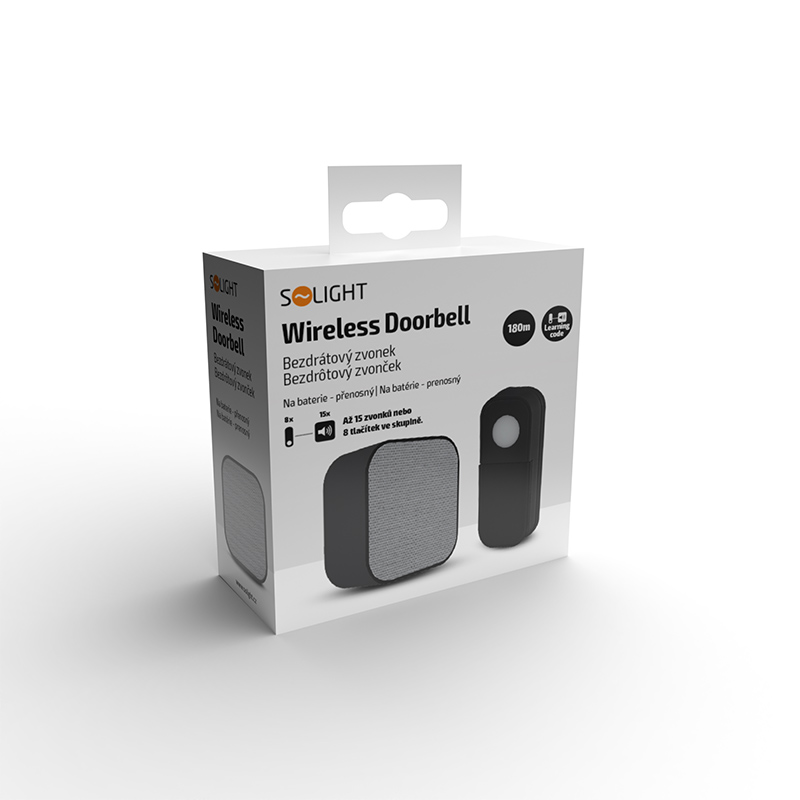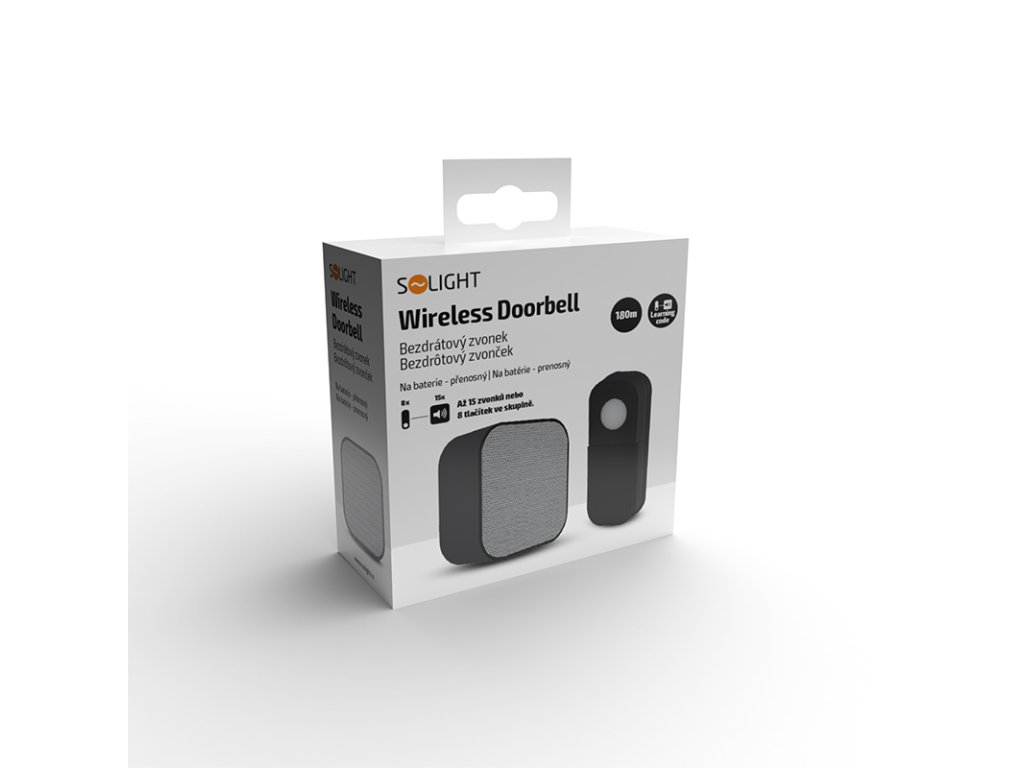 Solight bezdrôtový zvonček, batériový, 180m, černý, learning code