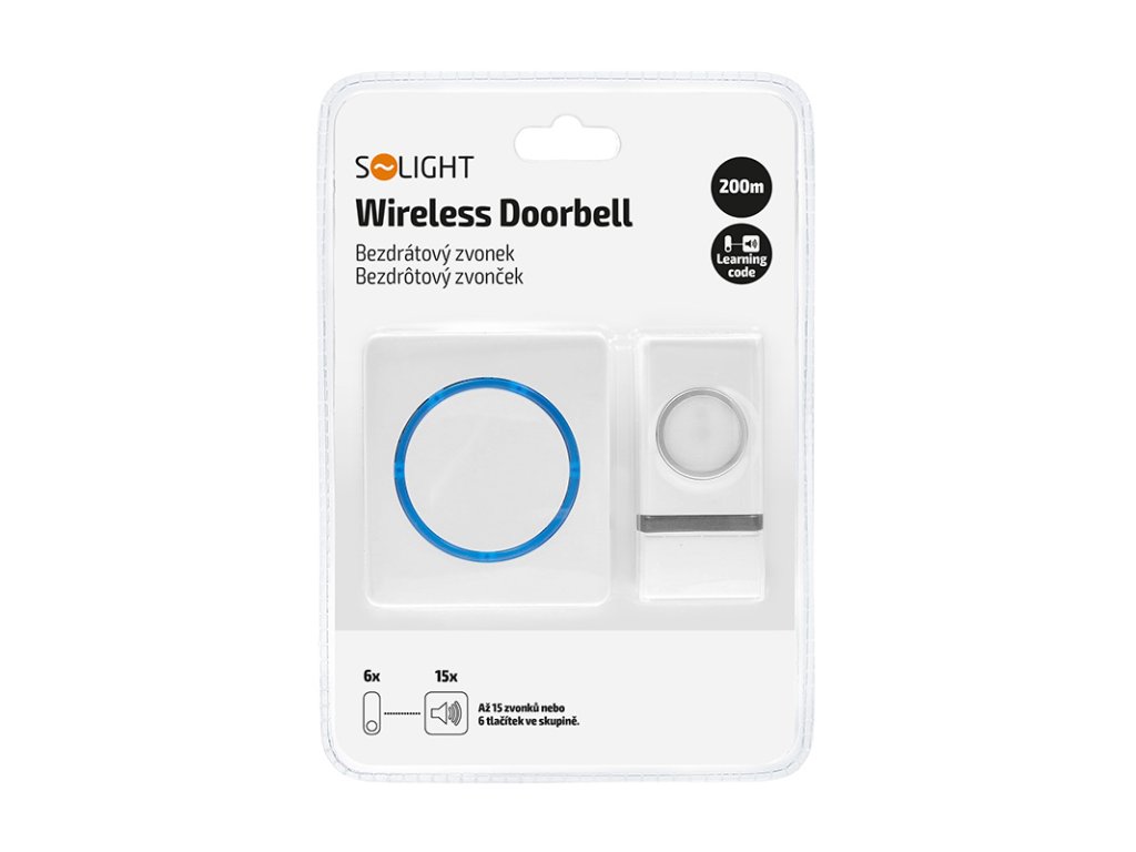 Solight bezdrôtový zvonček, batériový, 200m, biely