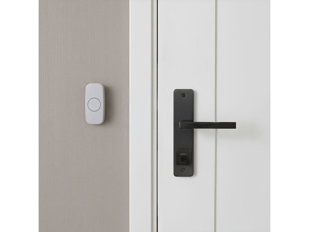 Biele prevedenie s čistými líniami a zaoblenými hranami pôsobí elegantne a nenápadne. Ovládacie tlačidlá zvončeka sú ľahko prístupné a iba na jednej strane. Tlačidlo je odolné proti vode a prachu (IP56) a je možné ho ľahko upevniť pomocou samolepiacej podložky alebo skrutiek.