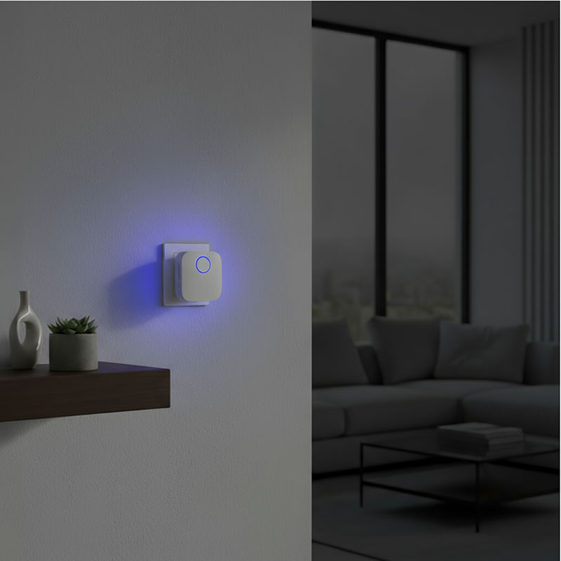 Obojsmerný výber z 60 melódií umožní ľahké prechádzanie späť, pokiaľ preskočíte tú správnu. Nie je nutné znova preklikávať celý zoznam. Štyri úrovne hlasitosti až 100dB a tichý režim s blikaním sa prispôsobia každej situácii. Svetelná signalizácia je decentná - malý krúžok sa jemne rozsvieti pri každom zazvonení inou farbou. A s rozmermi 6 x 6,5 cm je na pohľad až prekvapivo nenápadný.