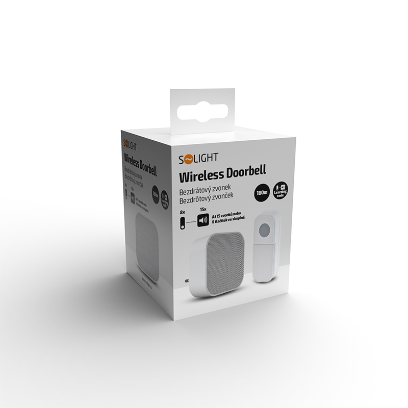 Solight bezdrôtový zvonček, do zásuvky, 180m, biely, learning code
