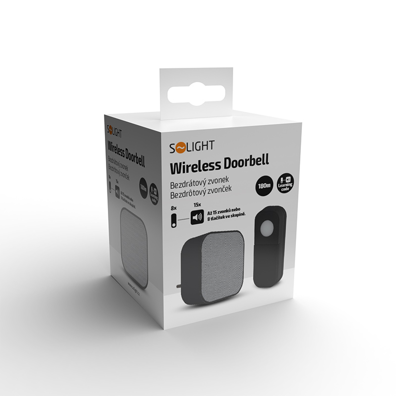 Solight bezdrôtový zvonček, do zásuvky, 180m, čierny, learning code