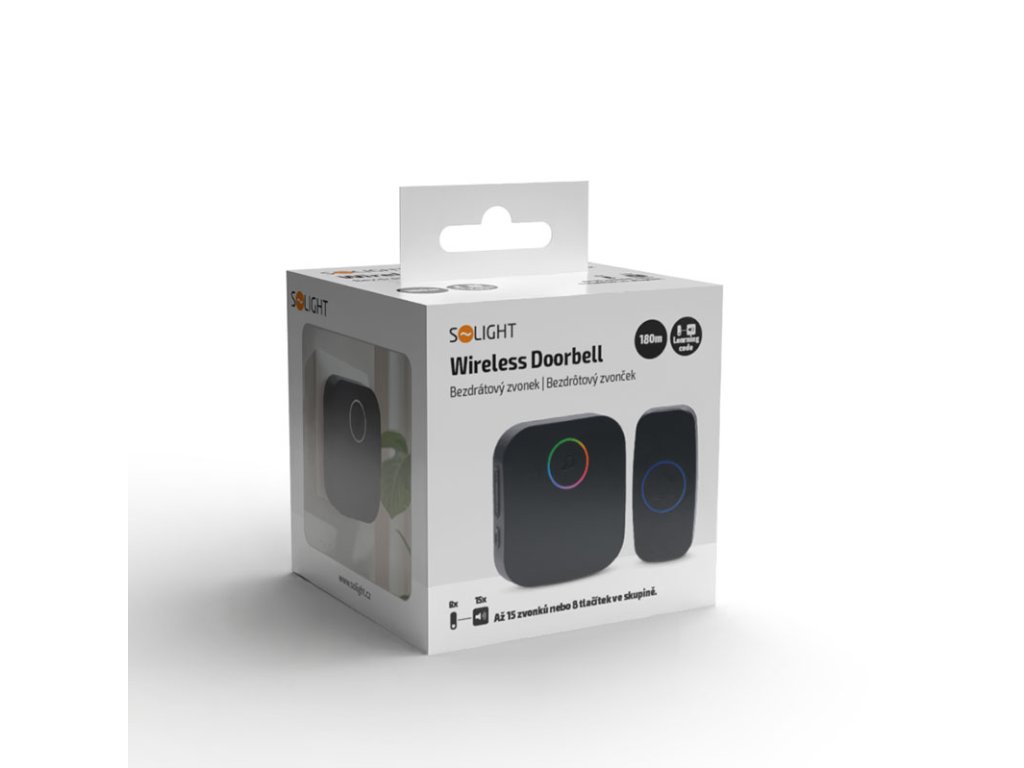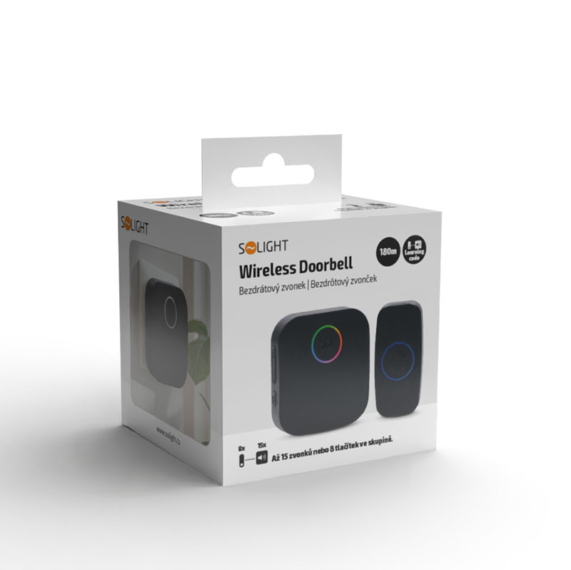 Solight bezdrôtový zvonček, do zásuvky, 180m, čierny, learning code
