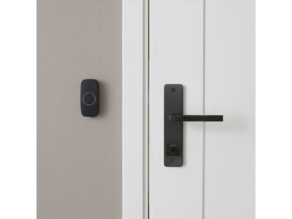 Matné čierne s čistými líniami a zaoblenými hranami pôsobí elegantne a nenápadne. Ovládacie tlačidlá zvončeka sú ľahko prístupné a iba na jednej strane. Tlačidlo je odolné proti vode a prachu (IP56) a je možné ho ľahko upevniť pomocou samolepiacej podložky alebo skrutiek.