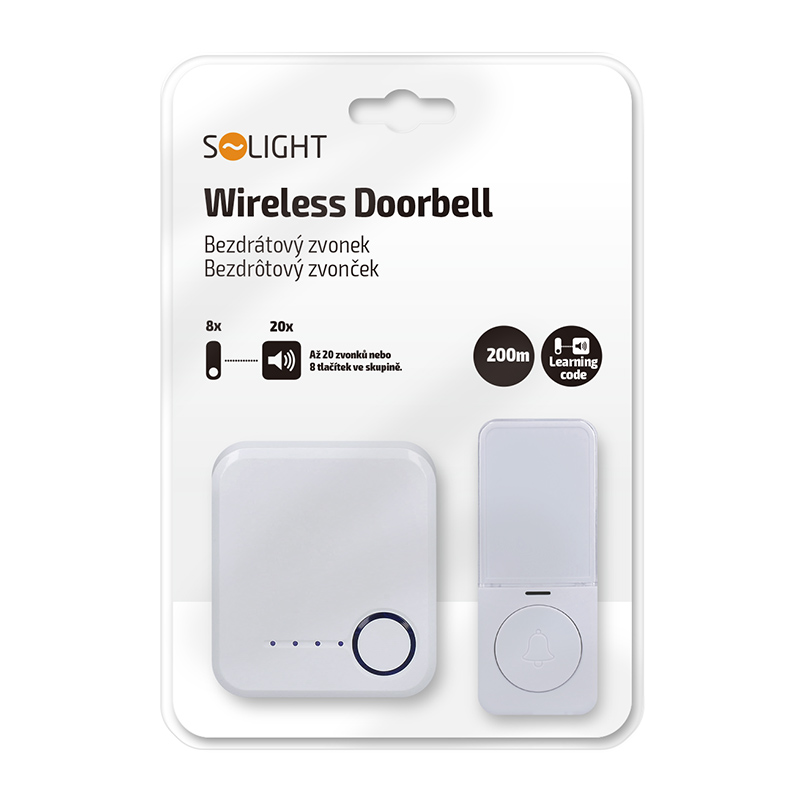 Solight bezdrôtový zvonček, do zásuvky, 200m, biely, learning code