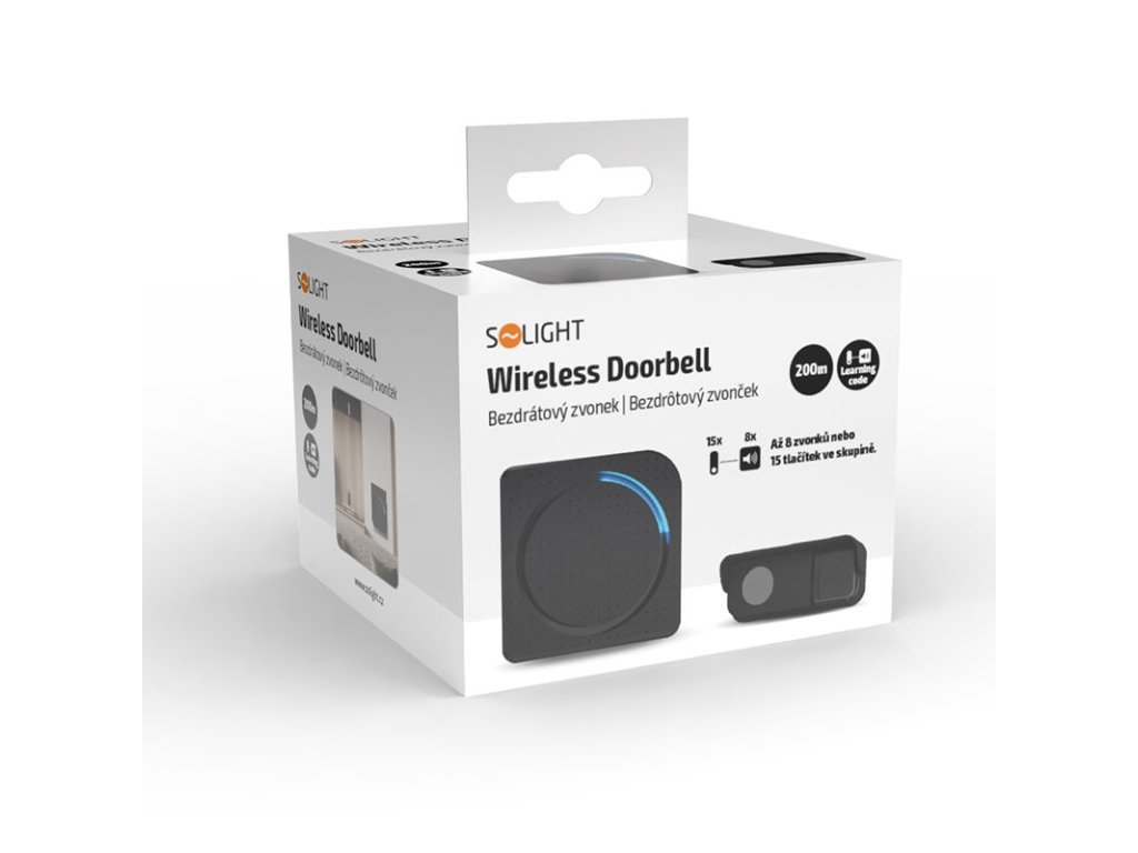 Solight bezdrôtový zvonček, do zásuvky, 200m, čierny, learning code