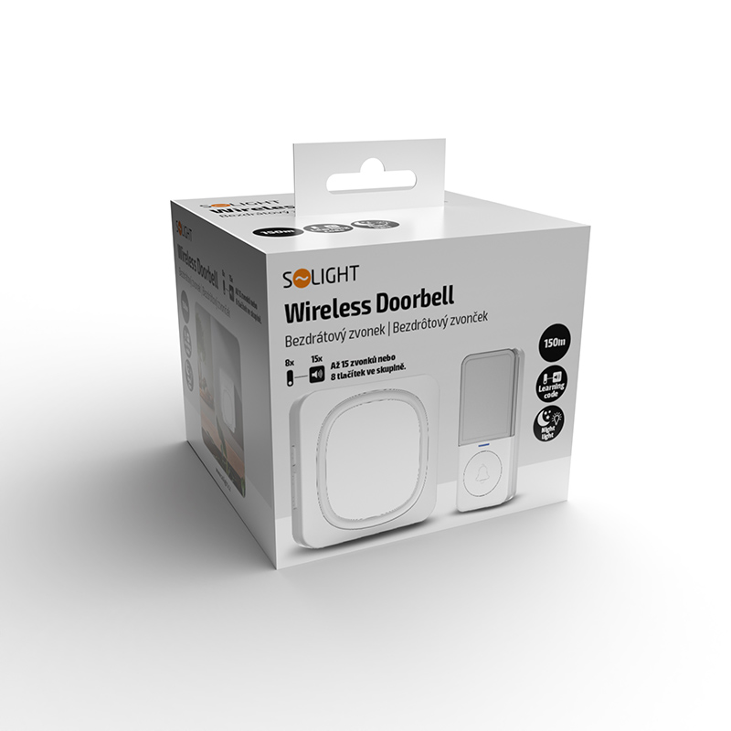 Solight bezdrôtový zvonček a nočné svetielko, do zásuvky, 150m, biely, learning code