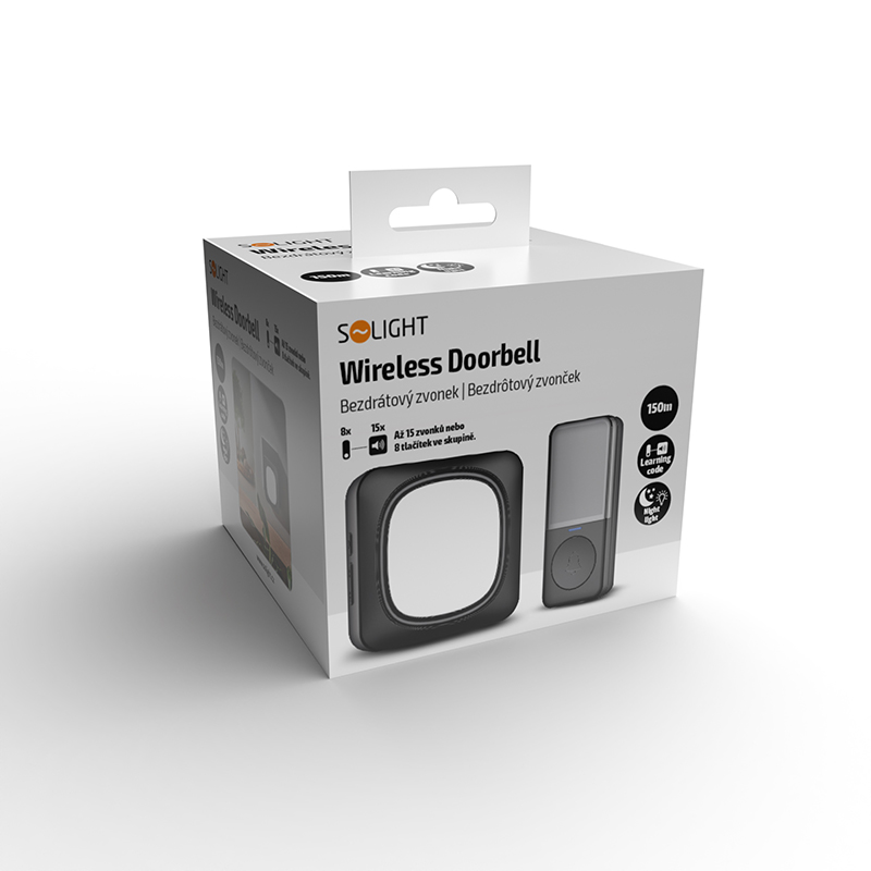 Solight bezdrôtový zvonček a nočné svetielko, do zásuvky, 150m, čierny, learning code
