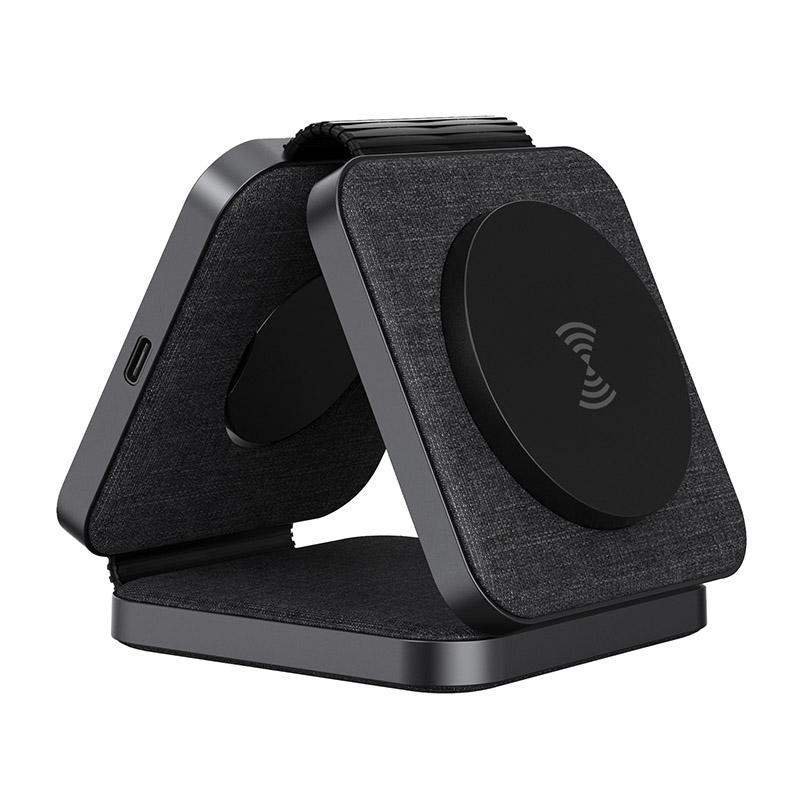 Druhá plocha s výkonom 3 W je výklopná a ideálna pre Apple Watch, zatiaľ čo tretia plocha slúži na nabíjanie bezdrôtových slúchadiel alebo ďalšieho telefónu.