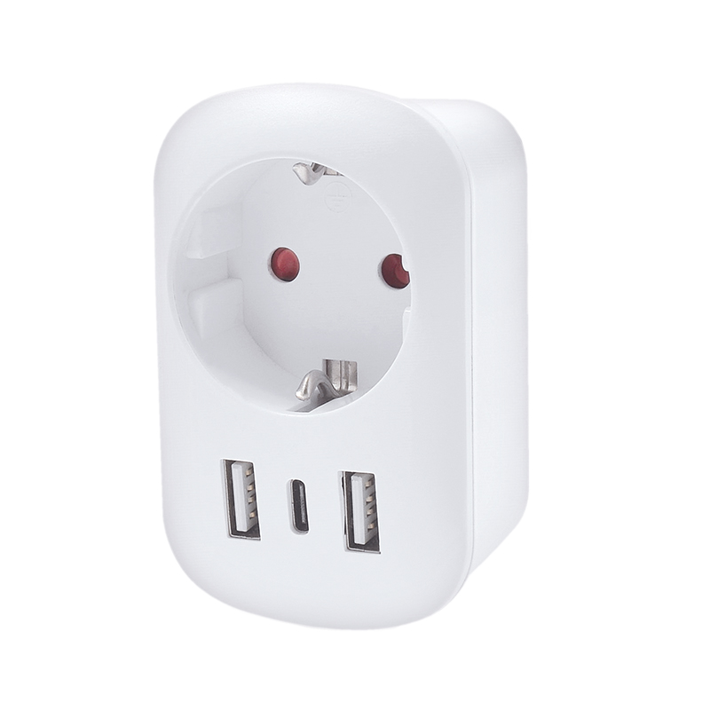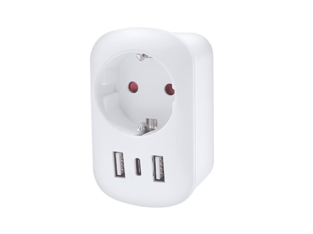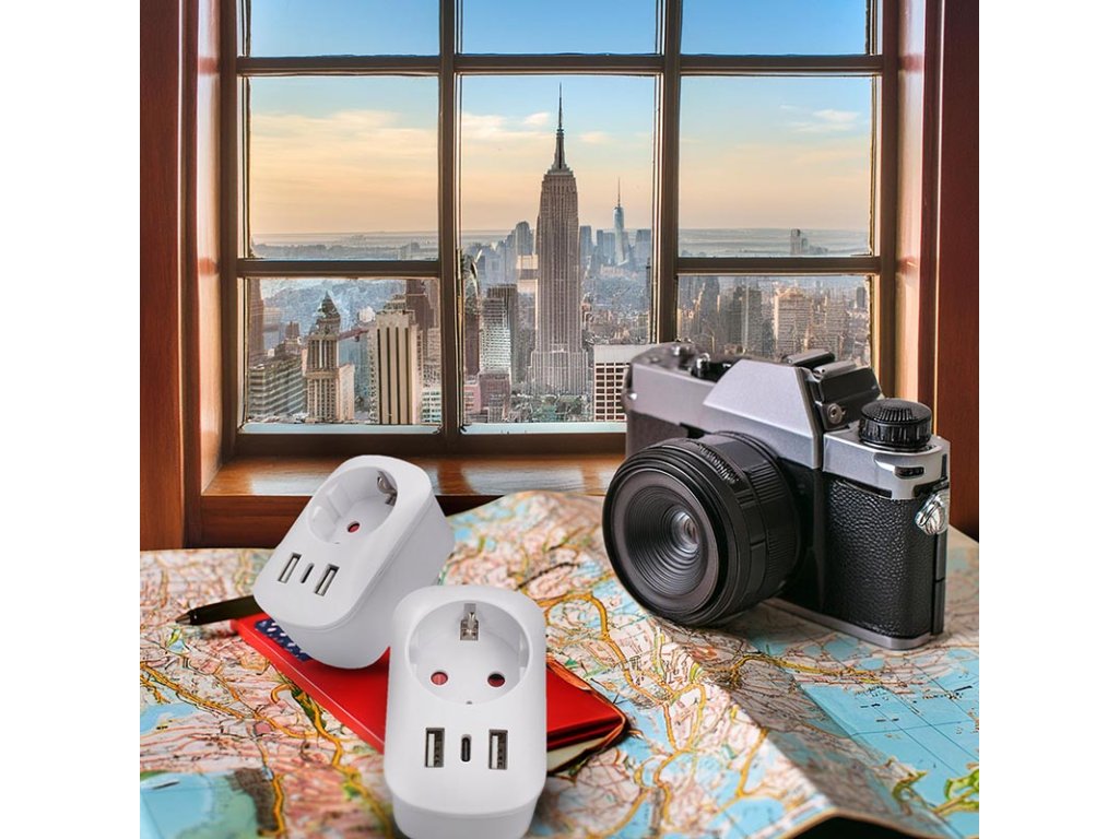 Adaptér umožňuje bezpečné použitie európskych zariadení v zásuvkách Spojených štátov a krajinách s USA štandardom typ B. Pripojí uzemnené aj neuzemnené vidlice prívodných káblov, bez problémov zapojíte všetko od notebookov až po fény. Vstavaná USB nabíjačka nabíja telefón či tablet bez nutnosti odpájať prívodnú šnúru z hlavnej zásuvky.