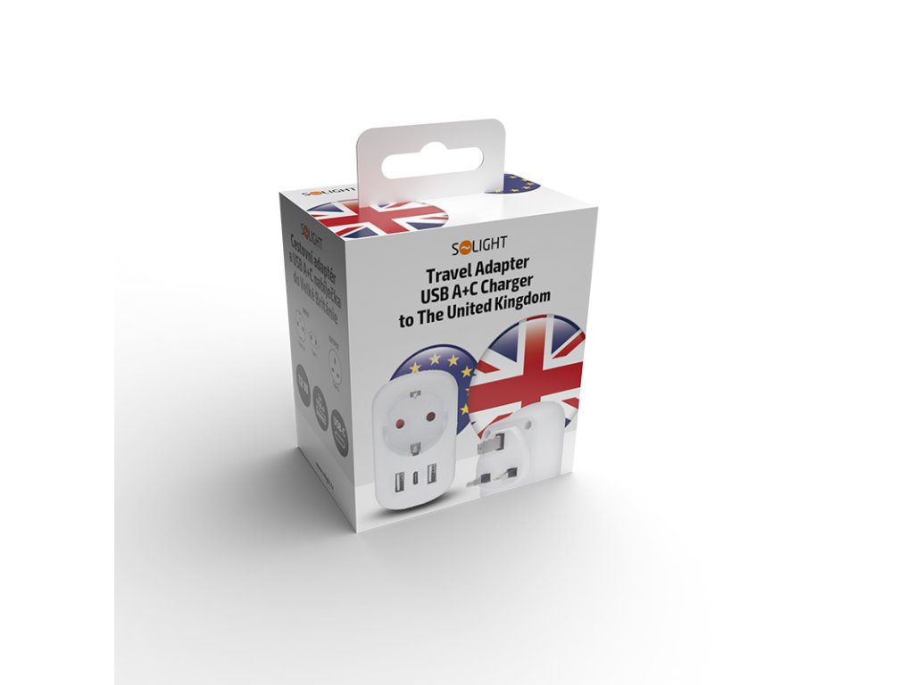 Solight cestovný adaptér s USB do Veľkej Británie, typ G