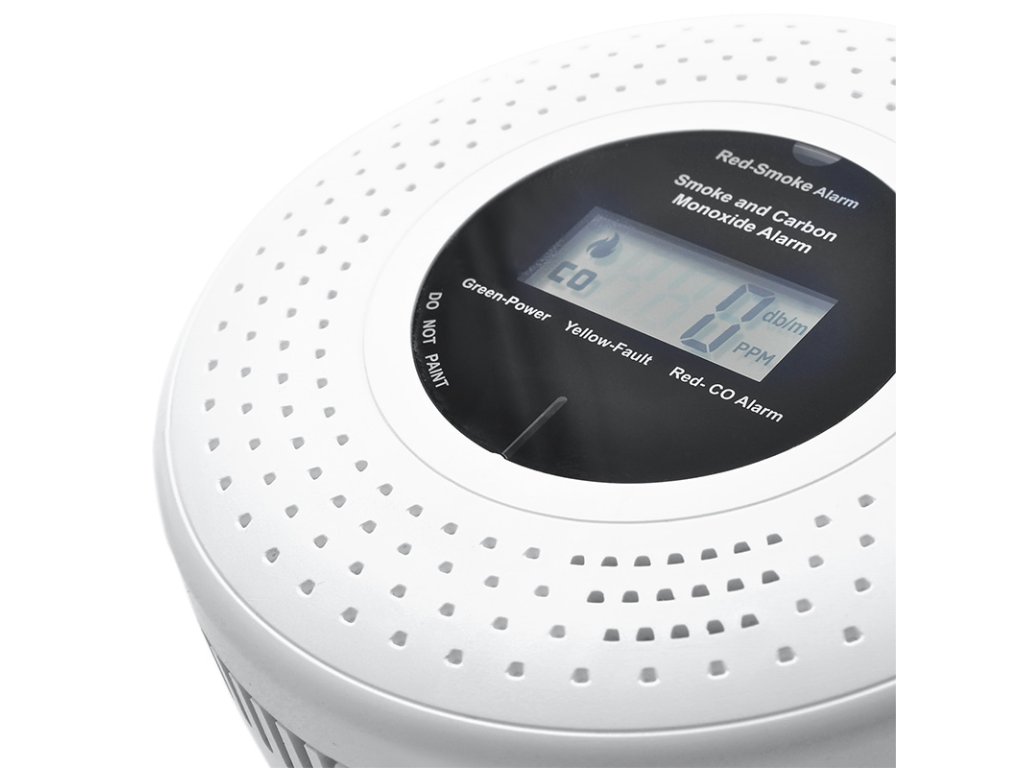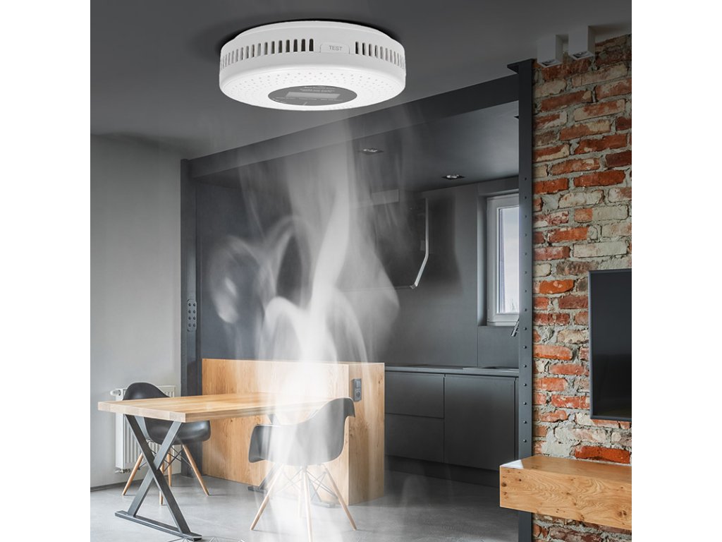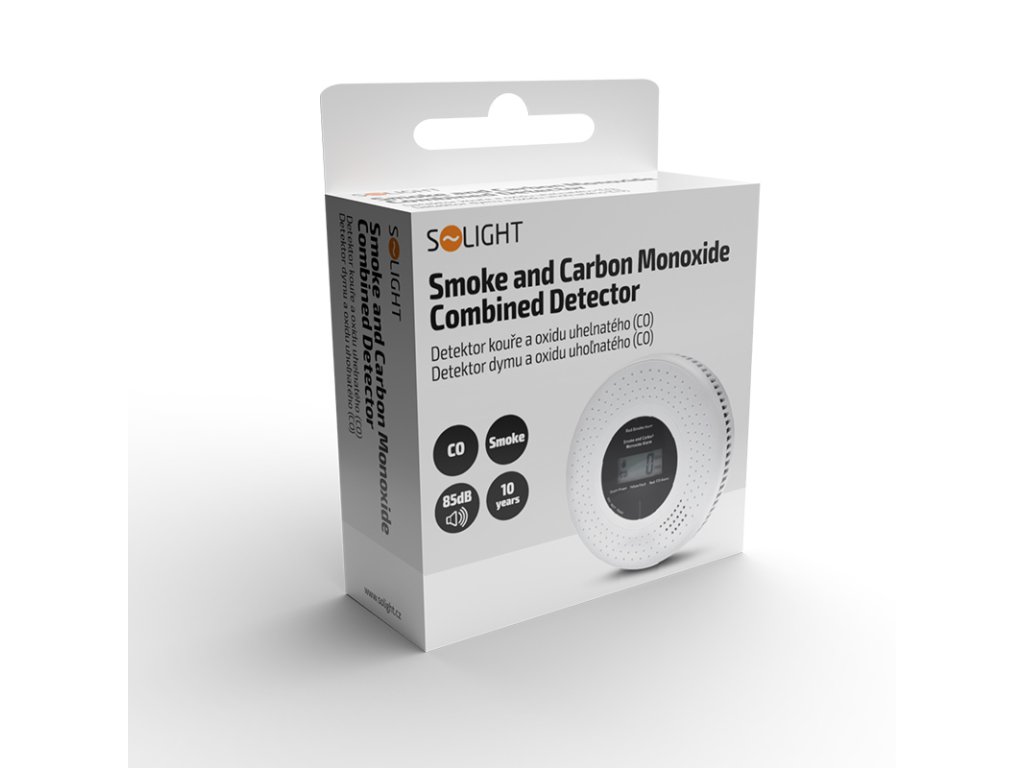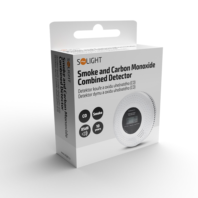 Kombinovaný detektor dymu a oxidu uhoľnatého - maximálna bezpečnosť. Tento detektor poskytuje včasné varovanie pred prítomnosťou dymu aj oxidu uhoľnatého kombináciou fotoelektrického a elektrochemického snímača. Ponúka dlhú životnosť, nízku spotrebu energie a hlasný alarm (85 dB) doplnený displejom LCD a svetelným signálom. Samodiagnostika monitoruje správnu funkciu zariadenia. Napájaný 2x batériami AA s upozornením na slabé batérie. Spĺňa prísne bezpečnostné normy.