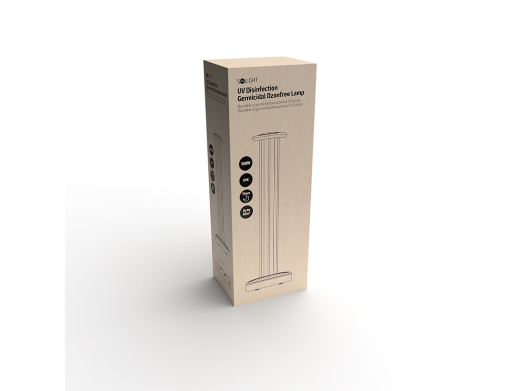 Táto výkonná germicídna bezzónová UV-C lampa je ideálna na dezinfekciu domácností, kancelárií, škôl alebo chodieb. Vďaka inteligentnému snímaču sa automaticky vypne pri detekcii osôb a opätovne sa aktivuje po ich odchode. Účinne ničí vírusy, baktérie, plesne a roztoče, je až 3 000-krát rýchlejšia ako chlór a 25-krát účinnejšia ako kyselina chlórová. Ponúka časovač 15/30/60 minút, diaľkové ovládanie s dosahom 15 m a životnosť až 5 000 hodín. Príkon 100 W, napájanie 230 V/50 Hz, dĺžka kábla 1,2 m. Rozmery 550 x 200 mm, hmotnosť 1,3 kg, čierna farba.
